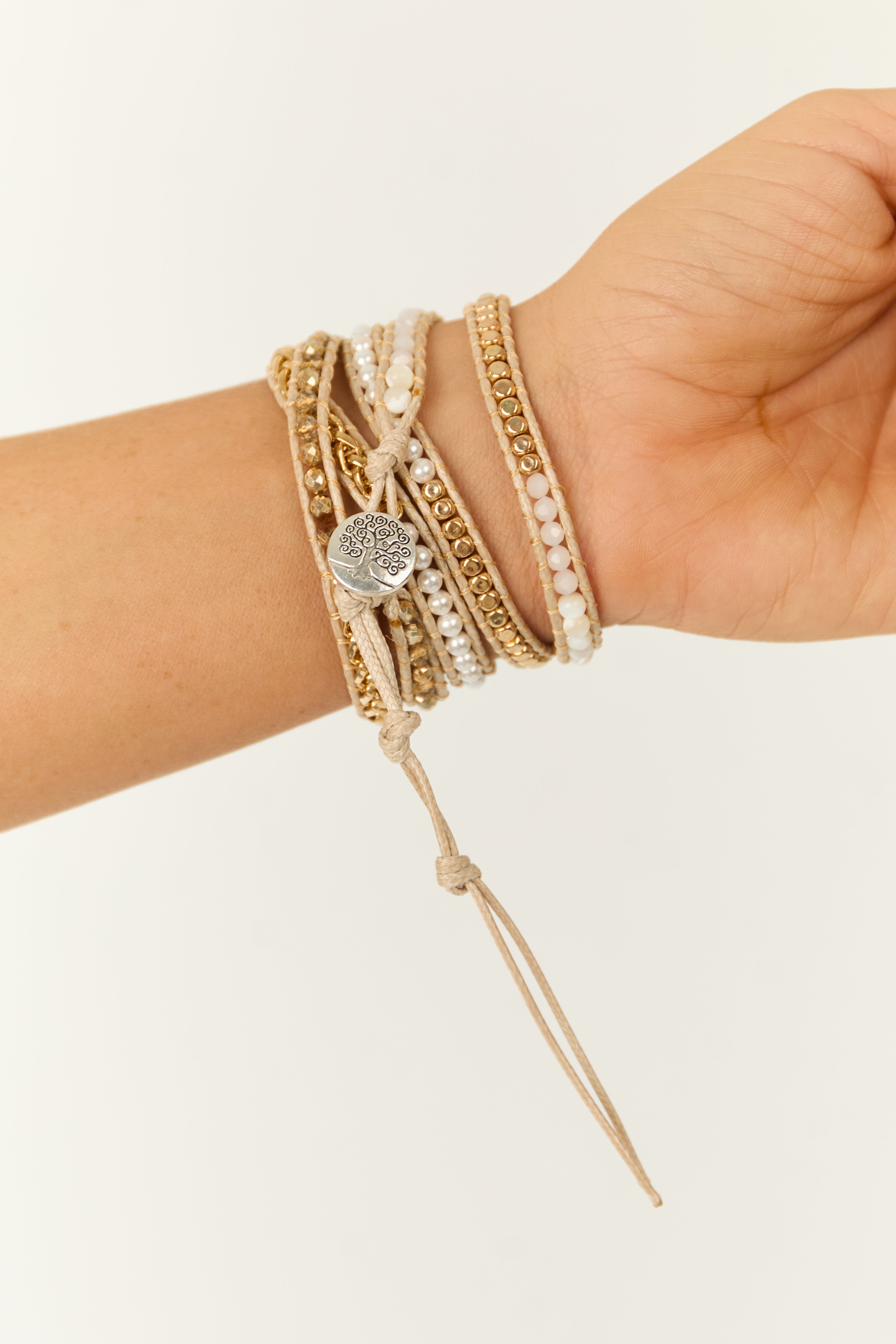 Almond Beaded Gemstone Cord Wrap Bracelet