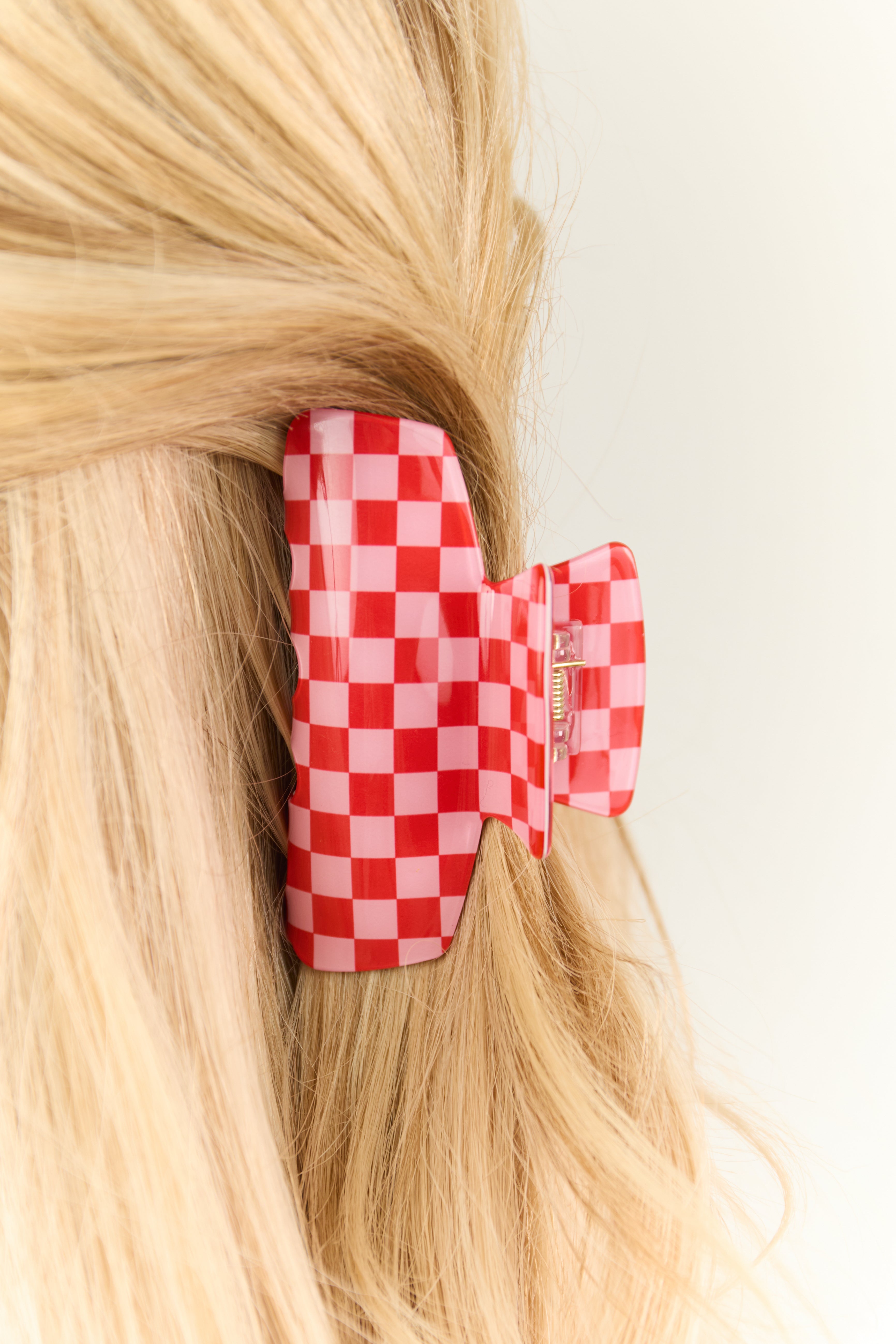 Baby Pink and Ruby Checkered Pattern Claw Hair Clip