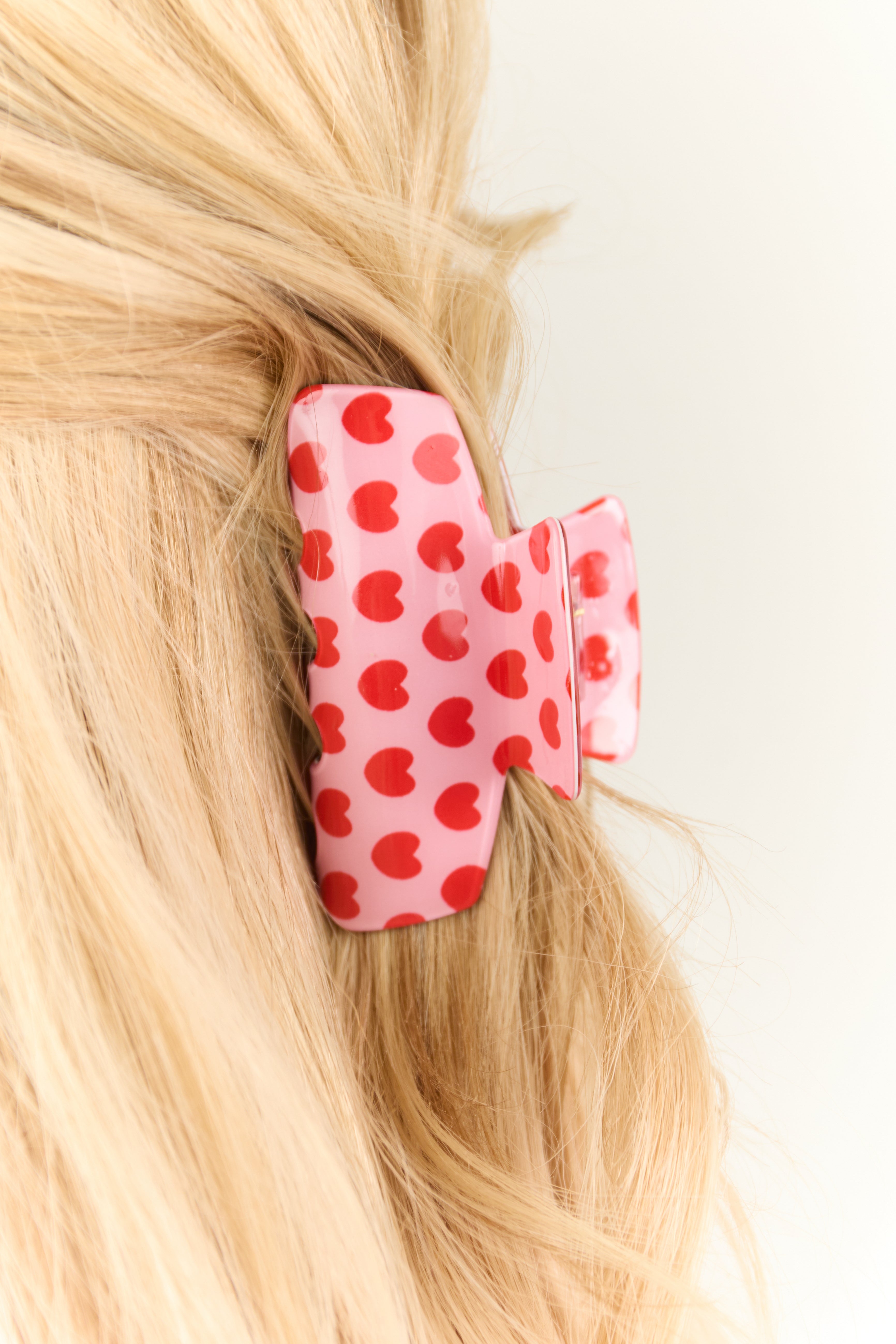 Baby Pink and Ruby Heart Pattern Claw Hair Clip