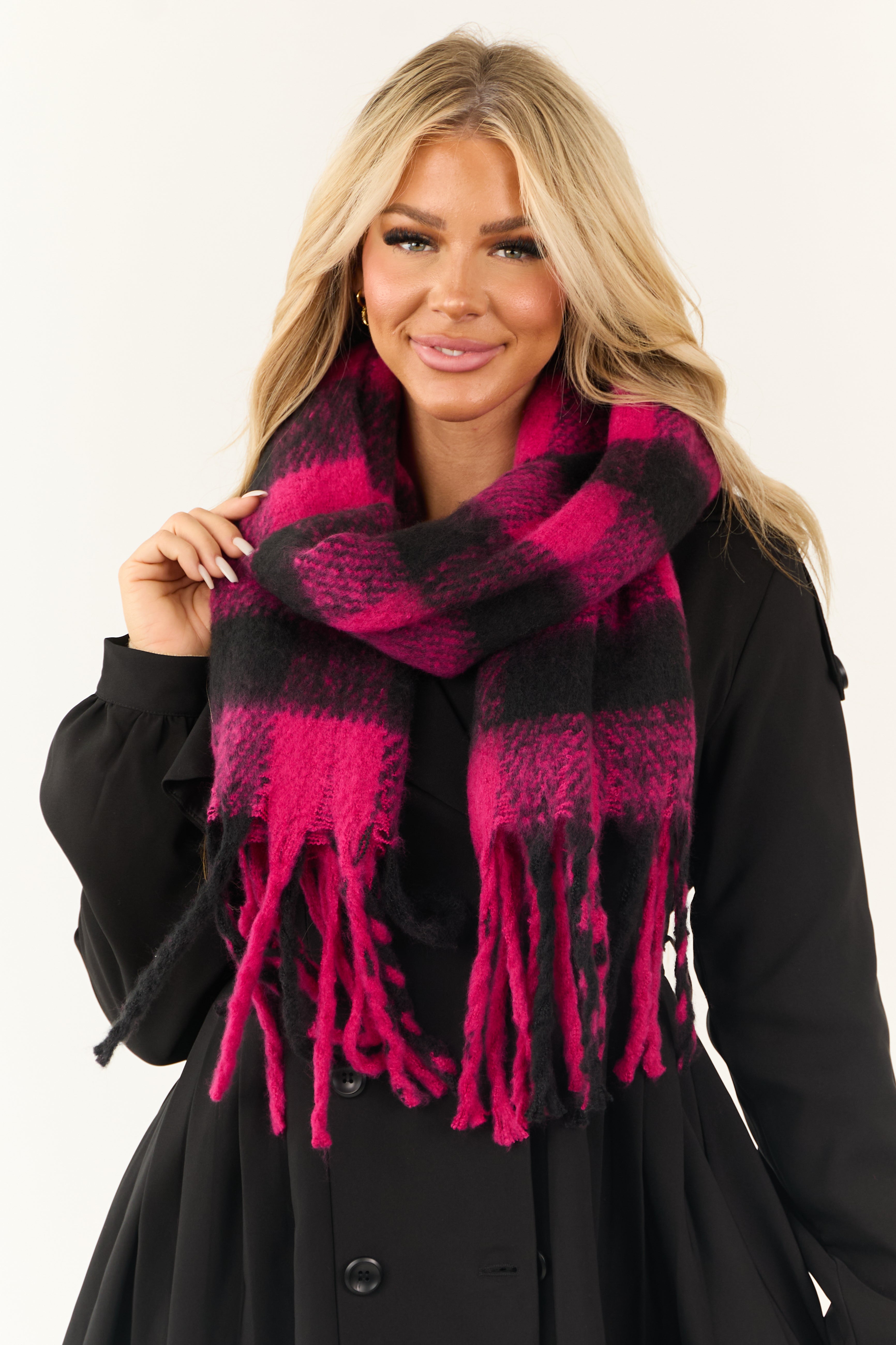 Black and Raspberry Buffalo Plaid Fuzzy Scarf