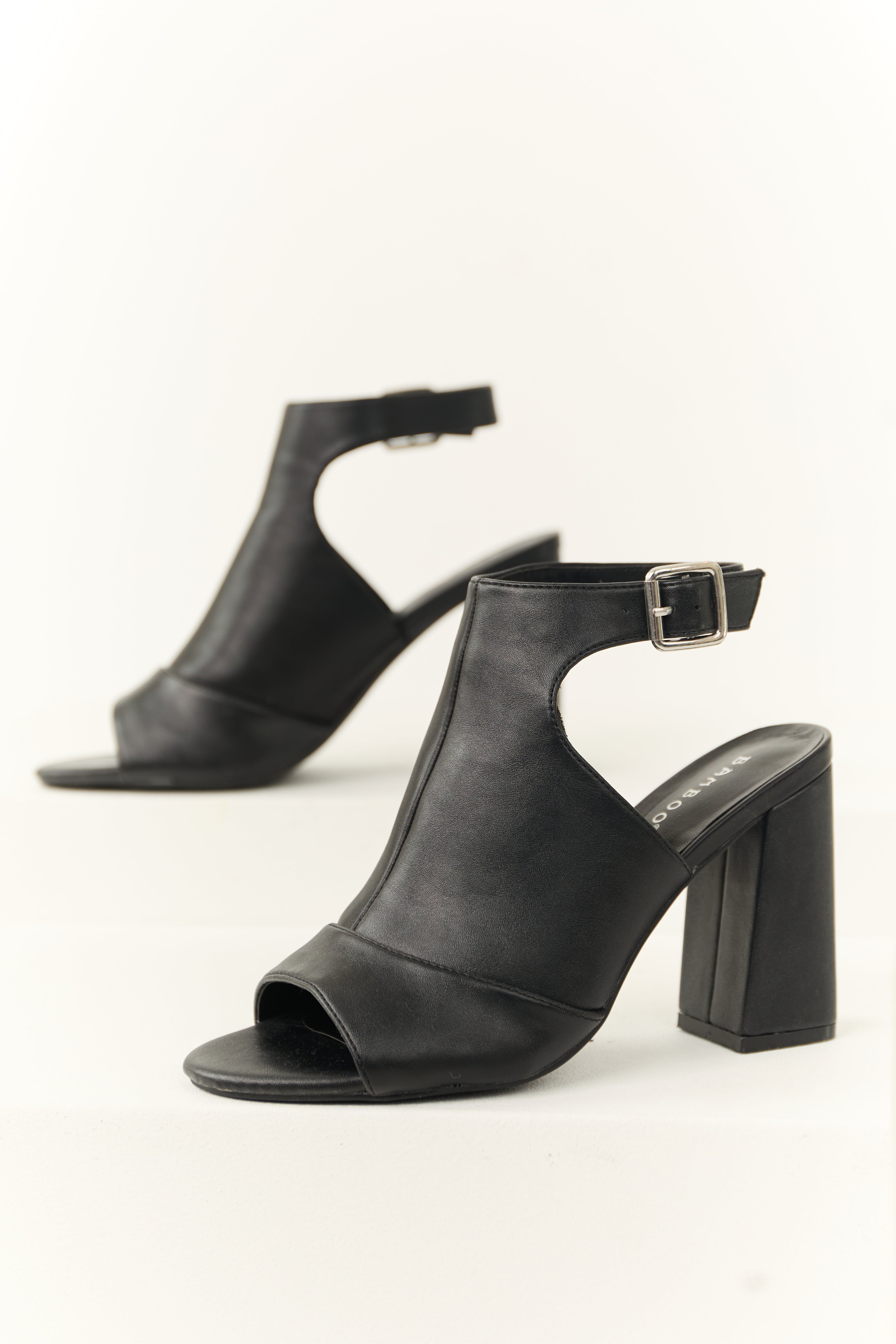 Black Faux Leather Strapped Chunky Heels