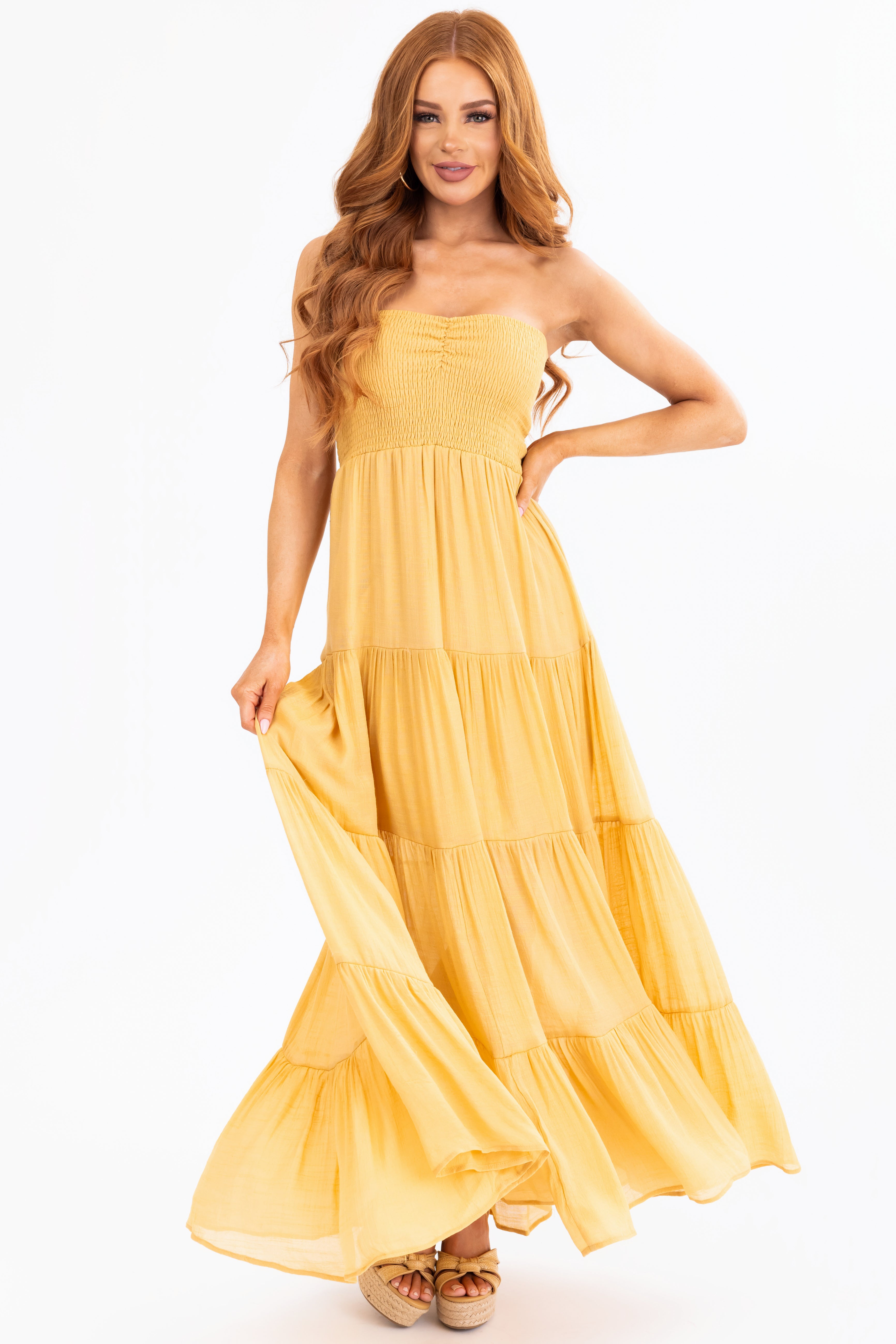 Amber Strapless Smocked Top Tiered Maxi Dress