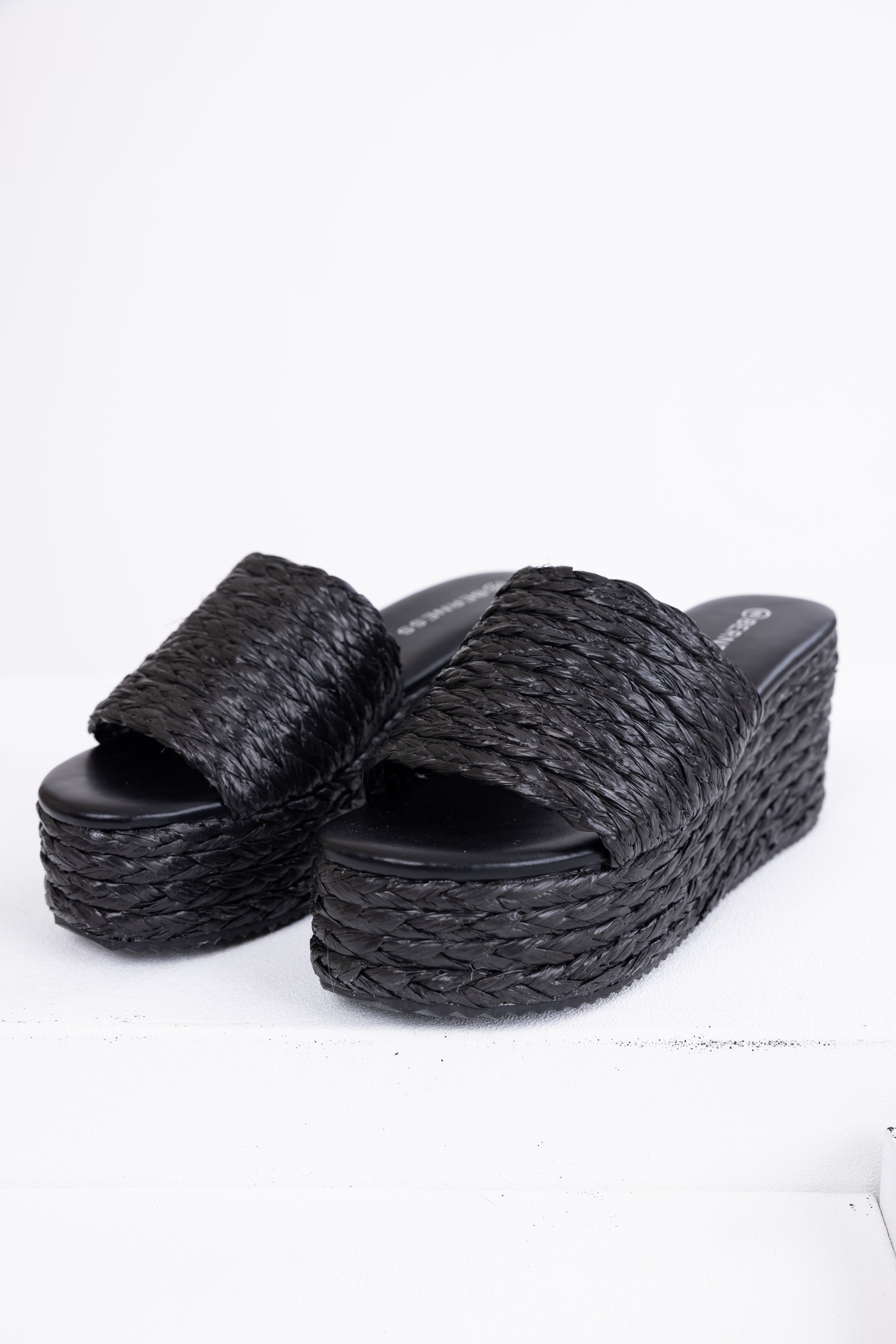 Desert Sand Clear Strap Open Toed Woven Wedges
