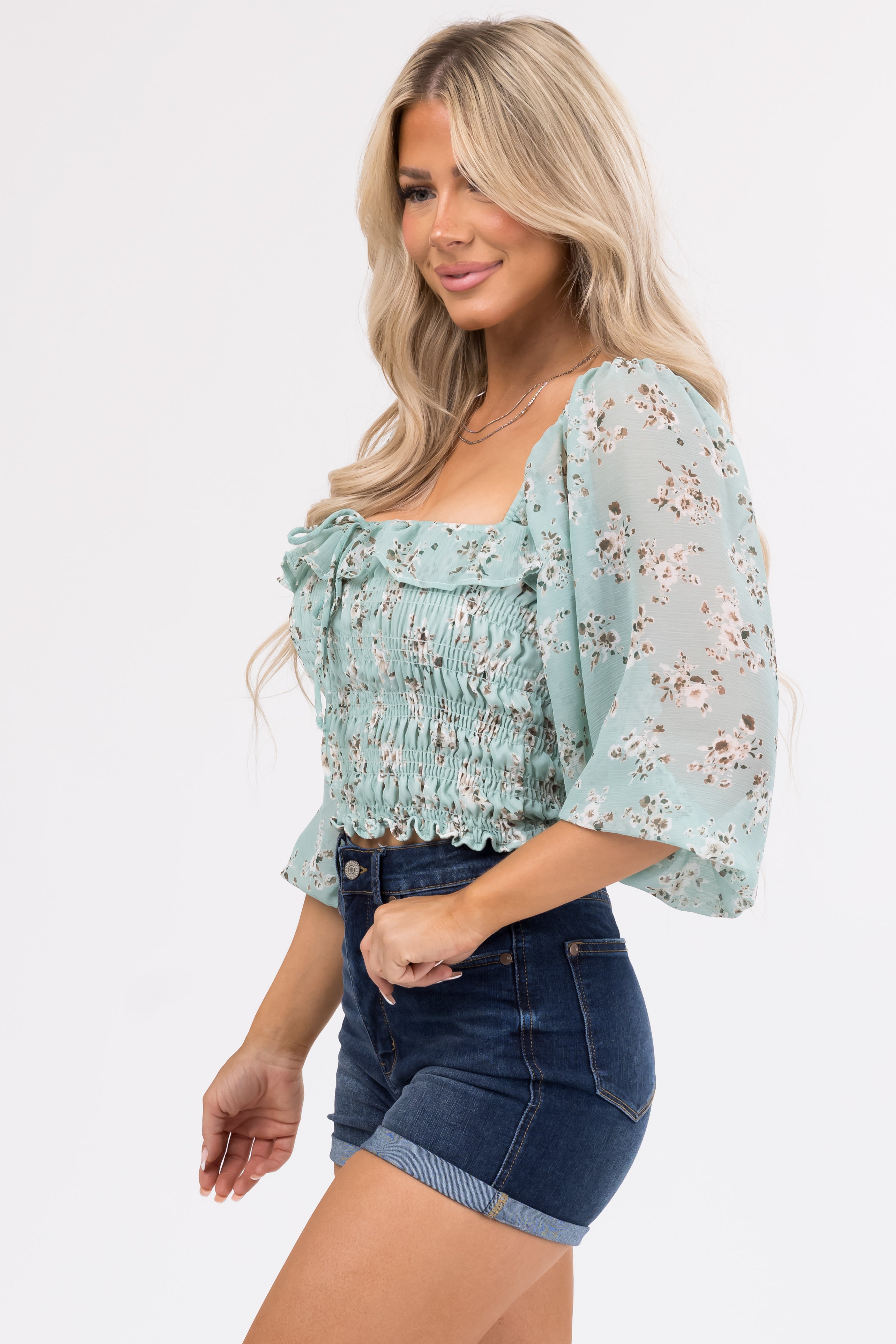 - 3/4 puff sleeves