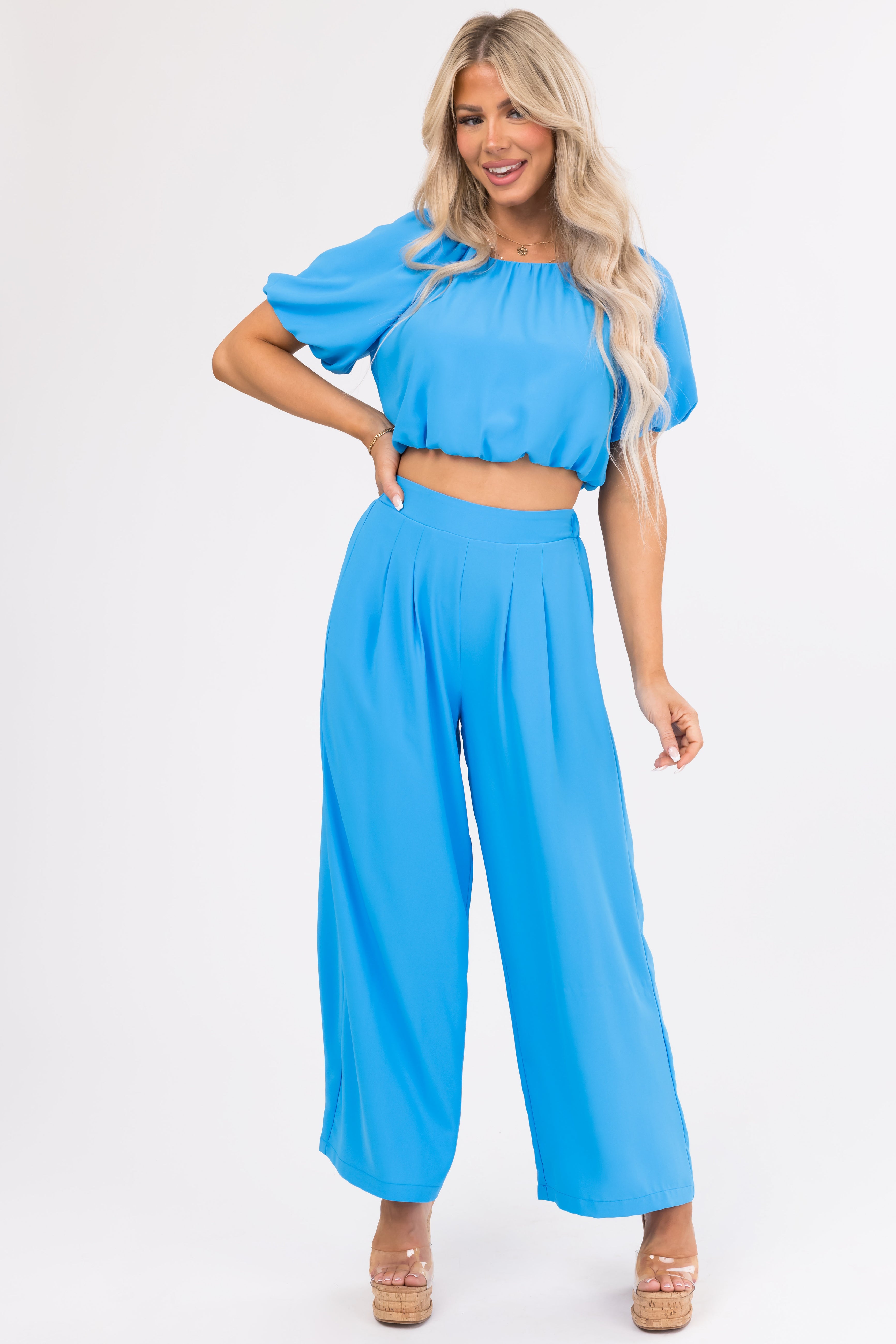 - Pair with Azure Pleated Wide Leg Woven Pants