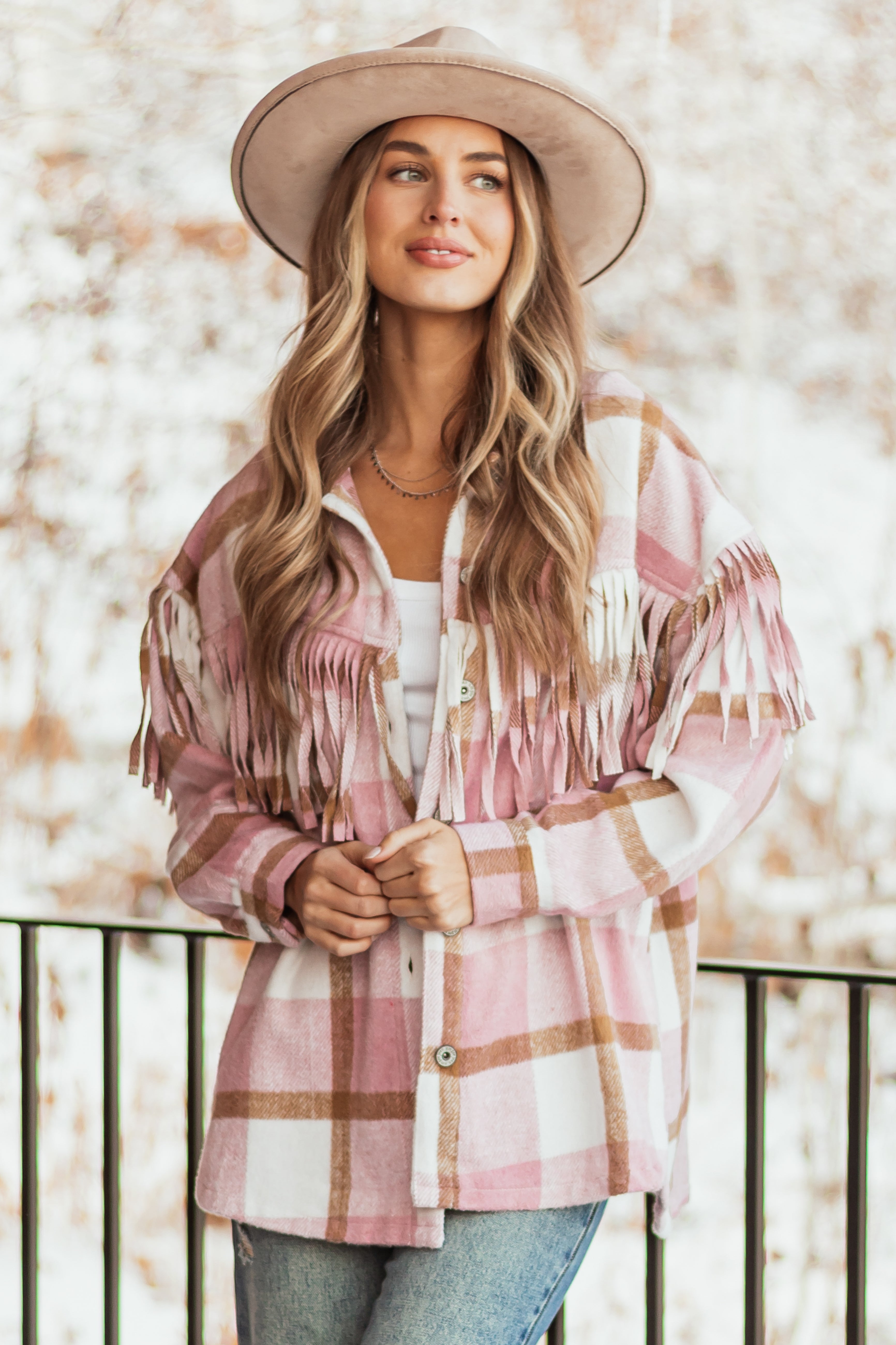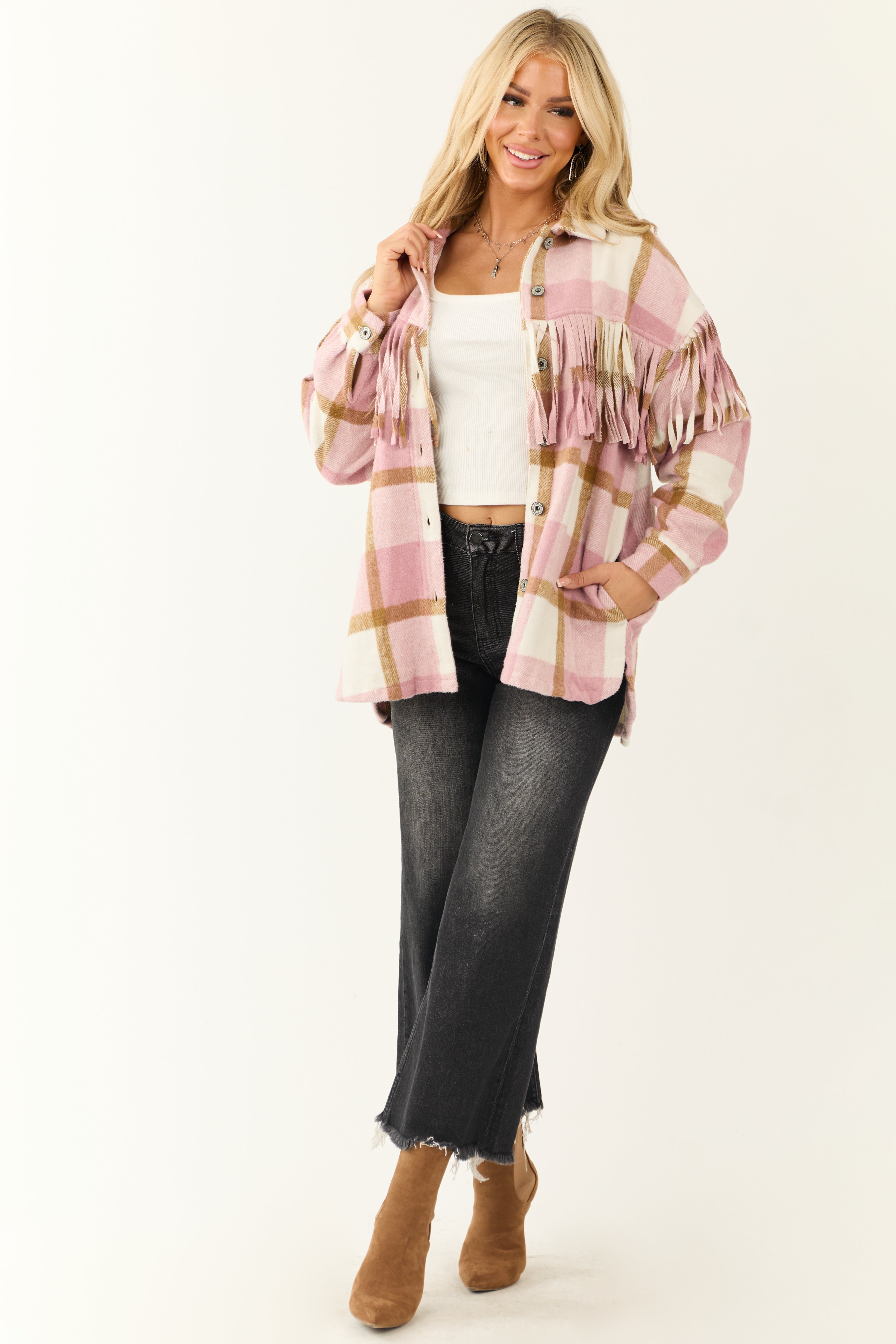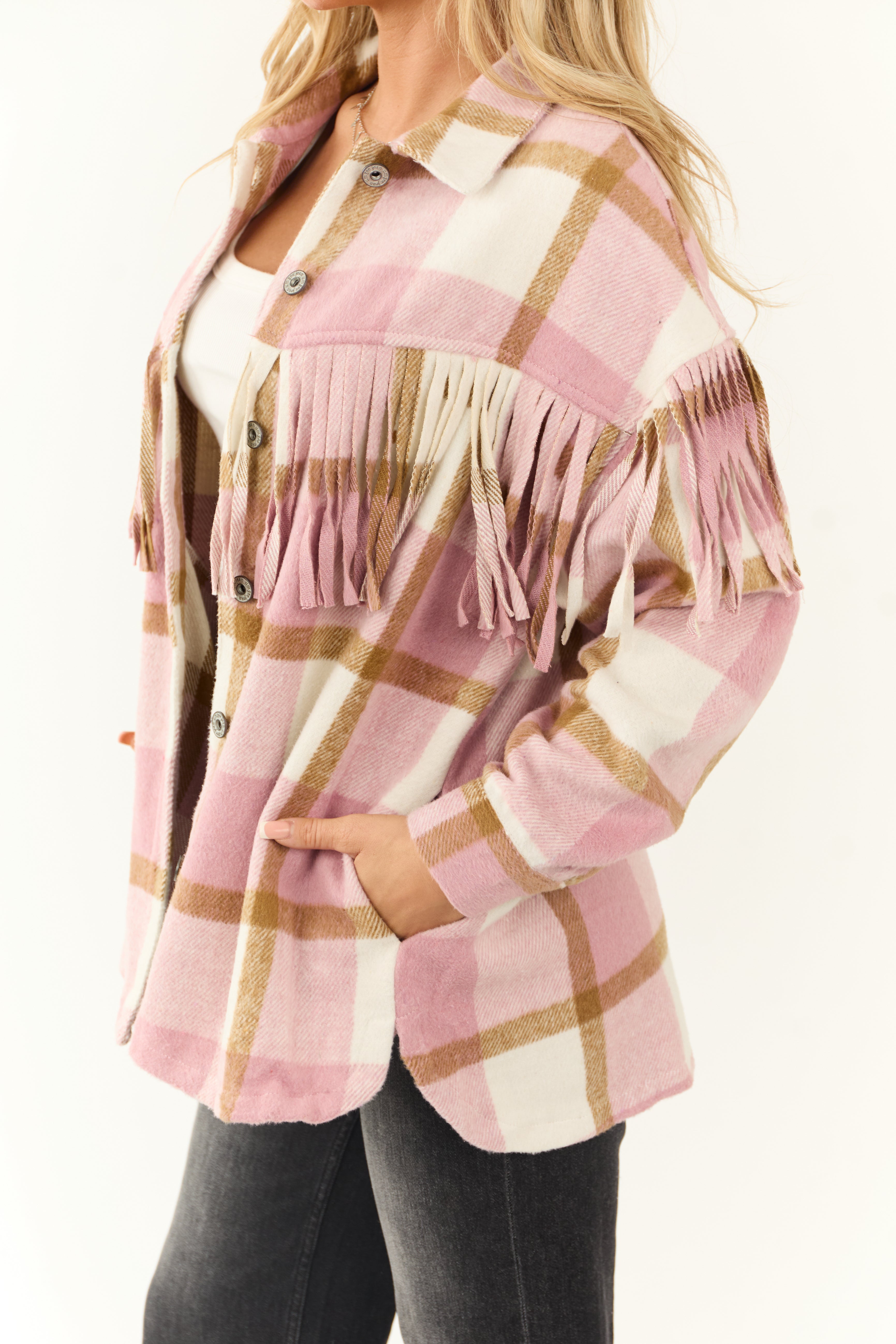 - Plaid in shades of Baby Pink. Ivory and Peanut