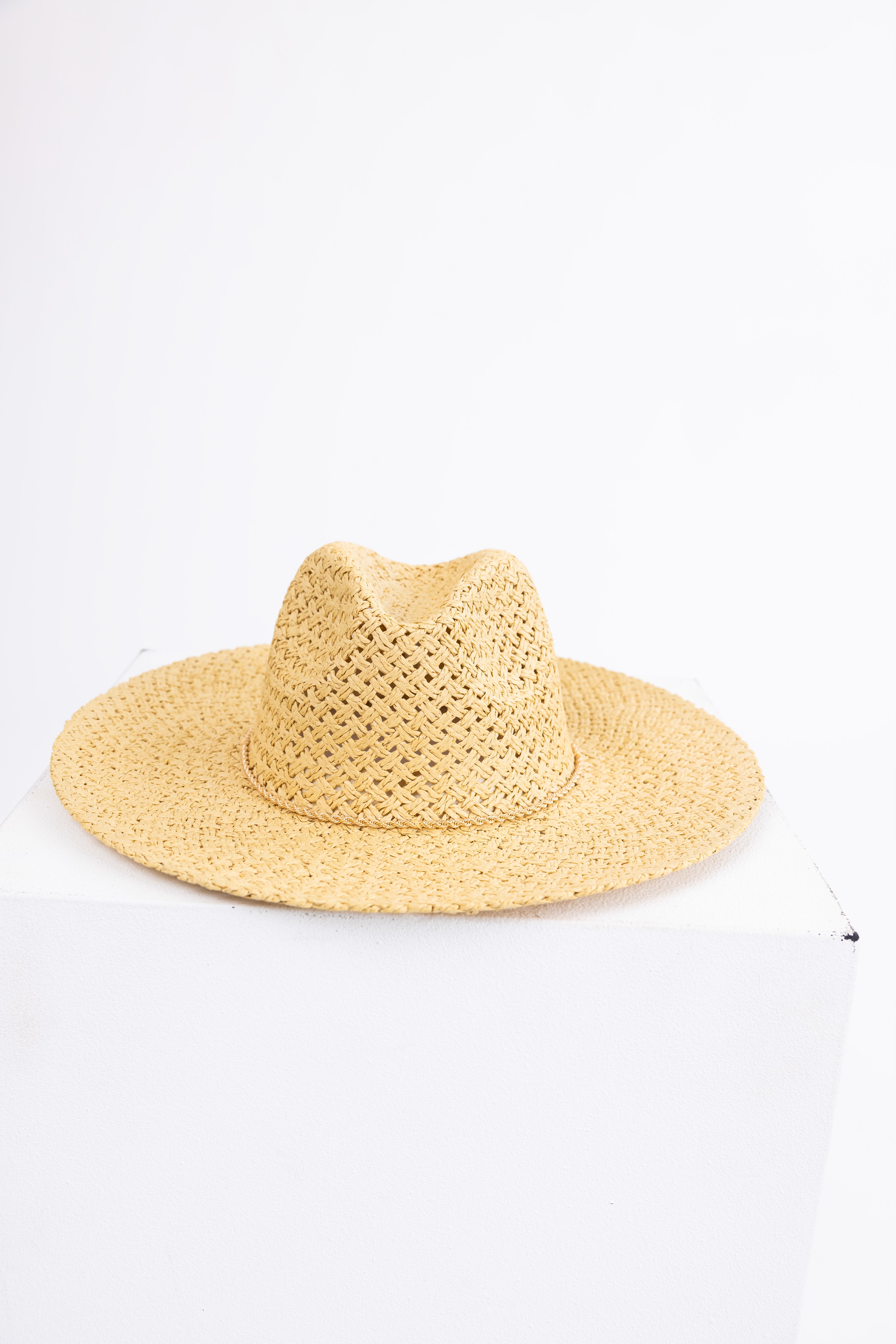 Beige Basket Weave Dainty Chain Sun Hat