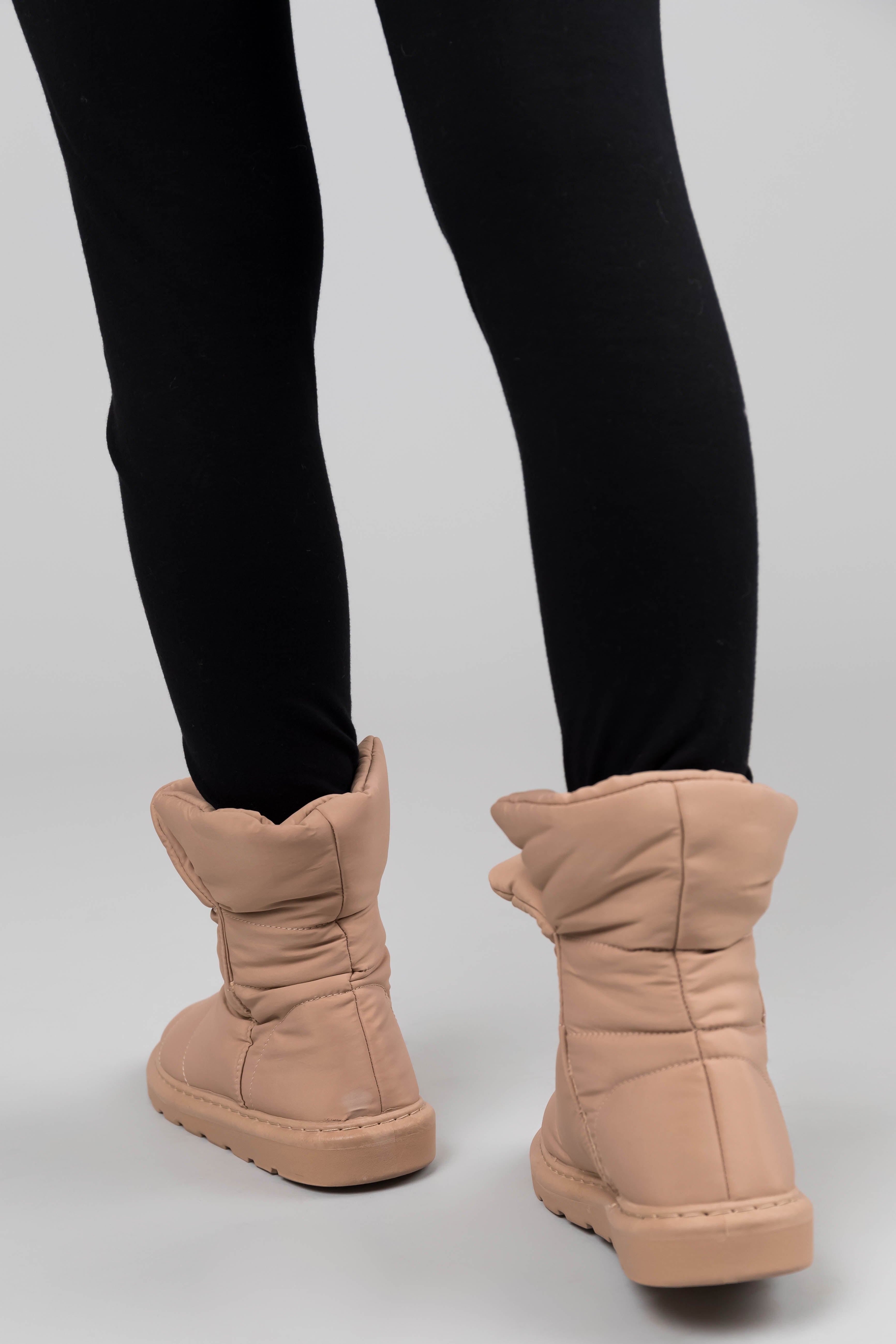 Beige Nylon Quilted Treaded Sole Boots