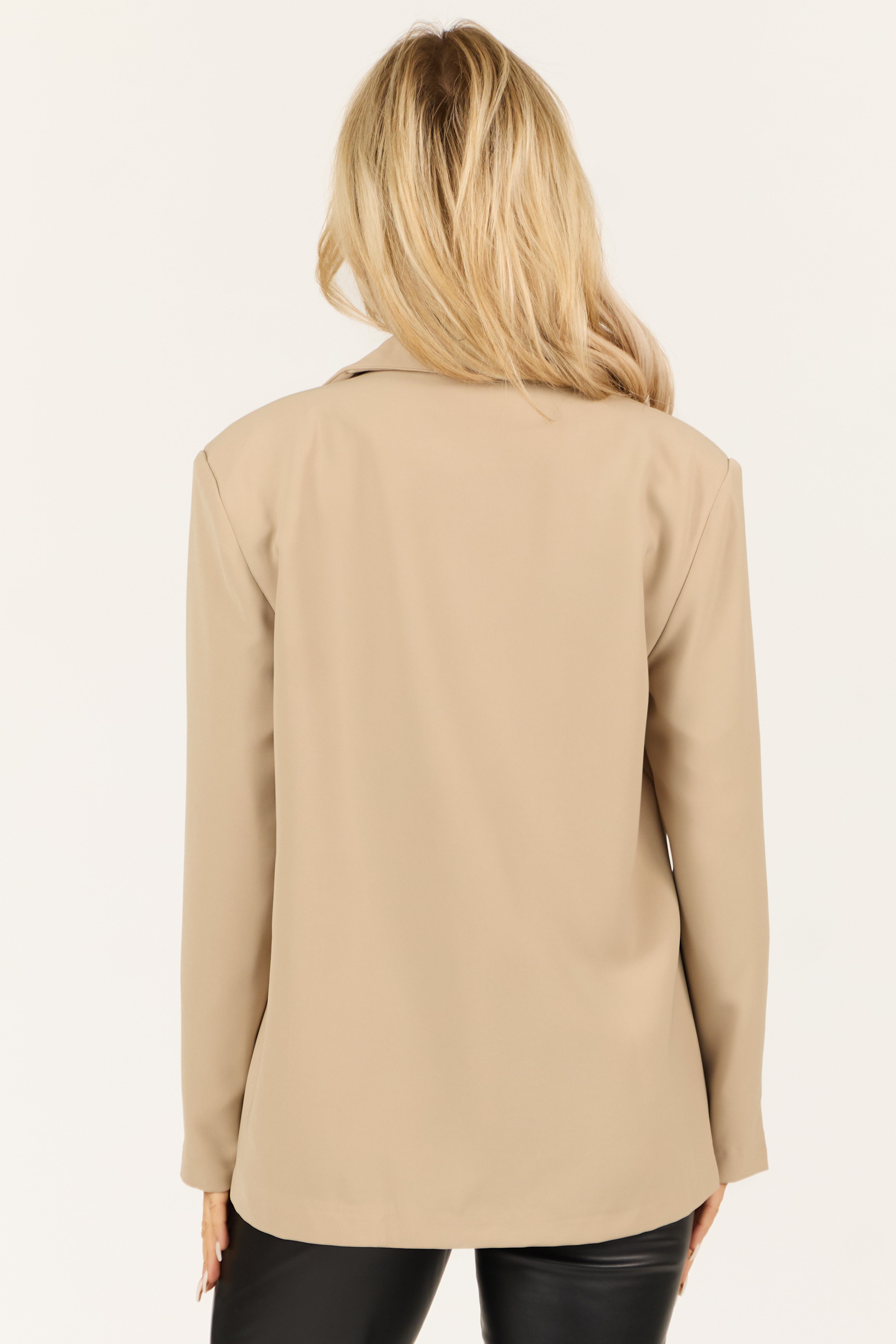 Beige Single Button Long Sleeve Shoulder Pad Blazer