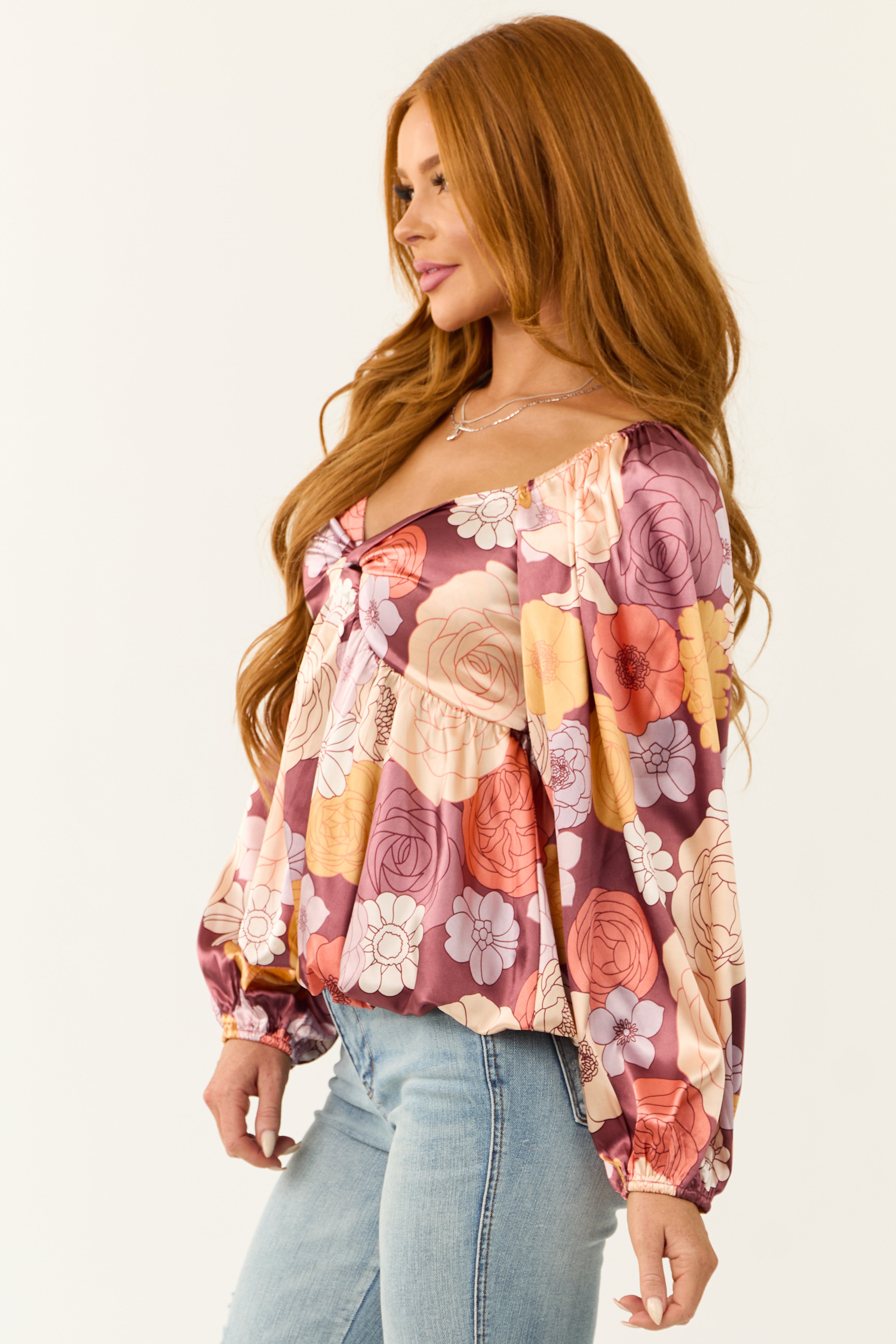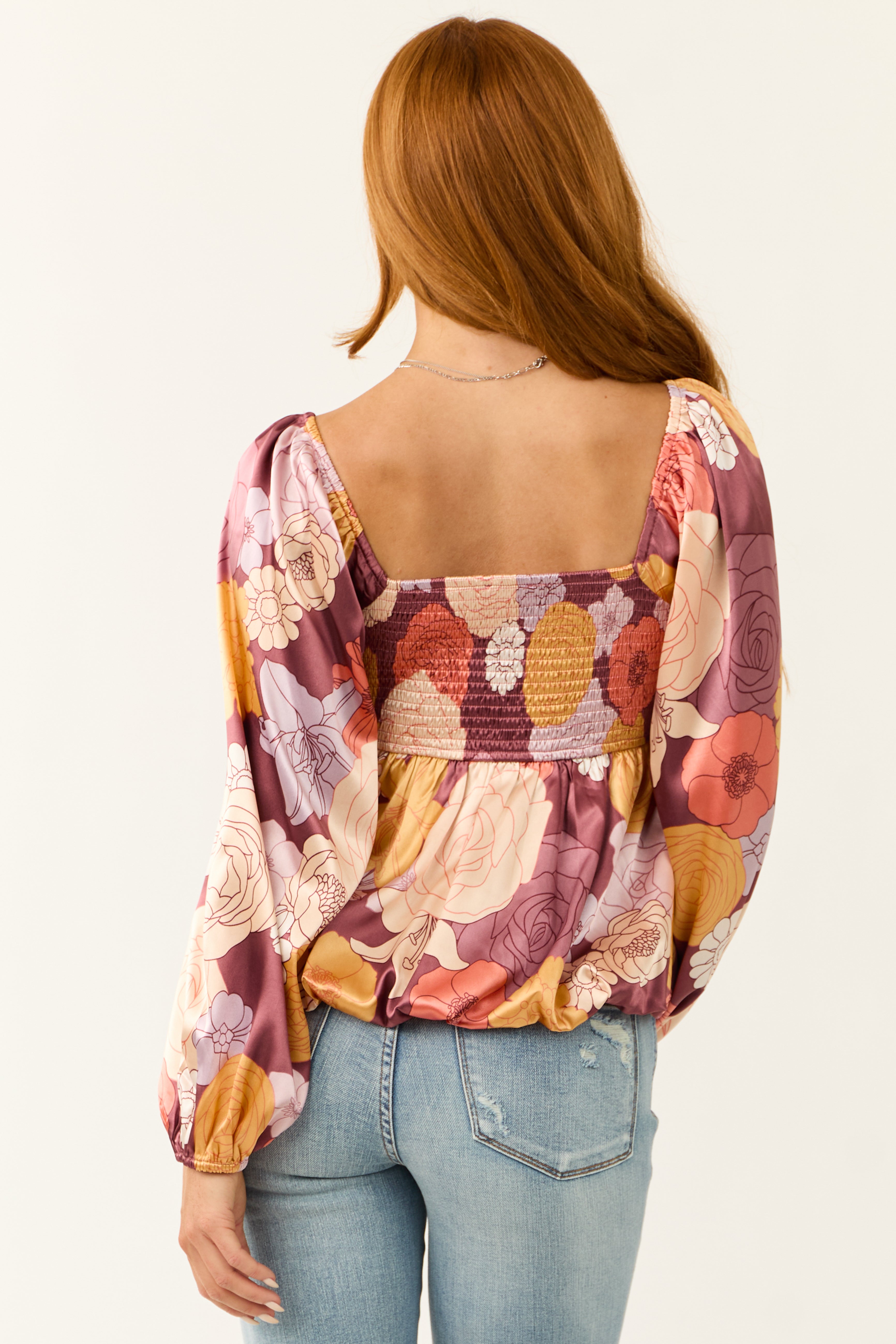 - Floral print in the shades of Berry. Champagne. Mango. Fire. Dusty Blush and Coral