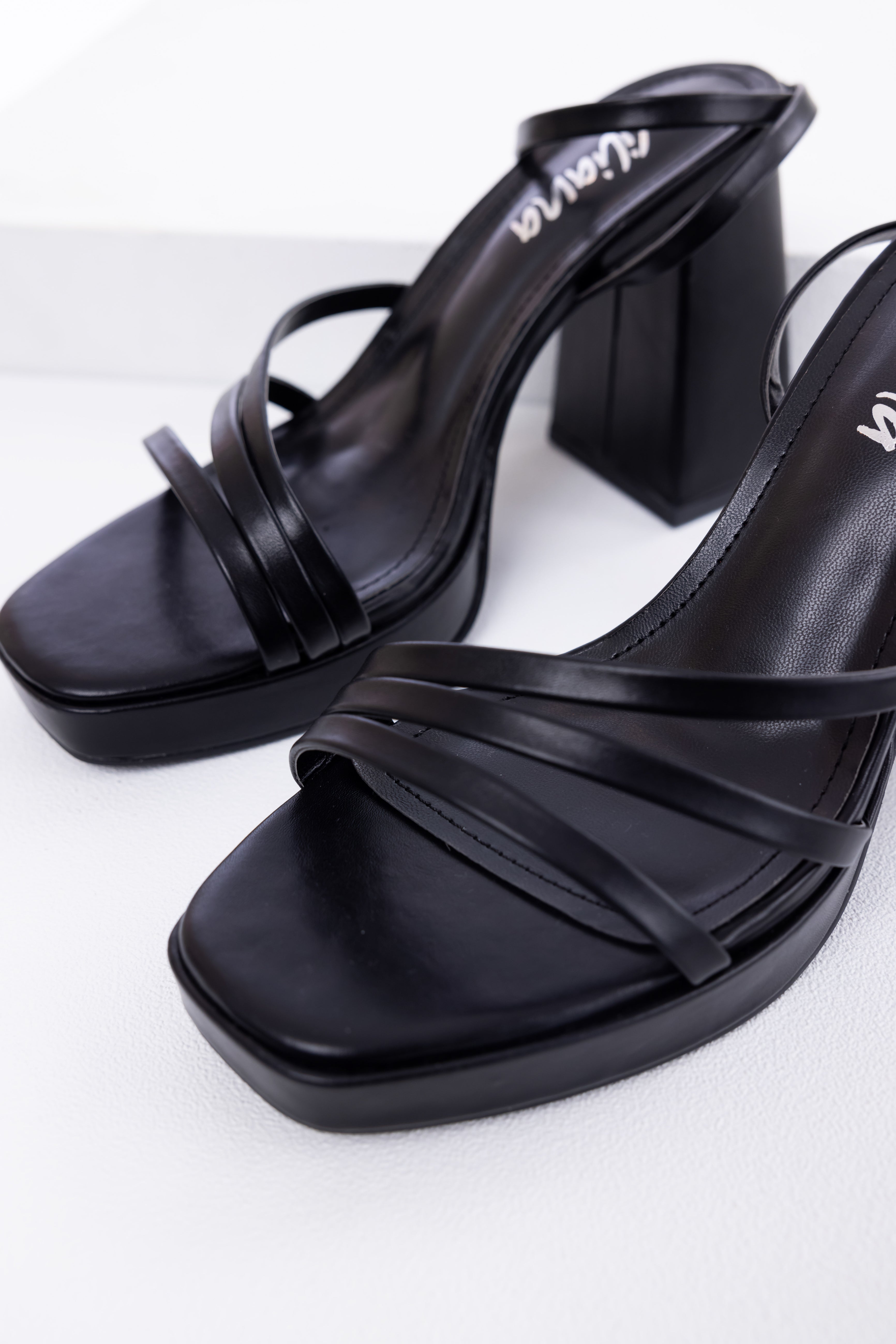 Black Block Heel Strappy Dress Sandals