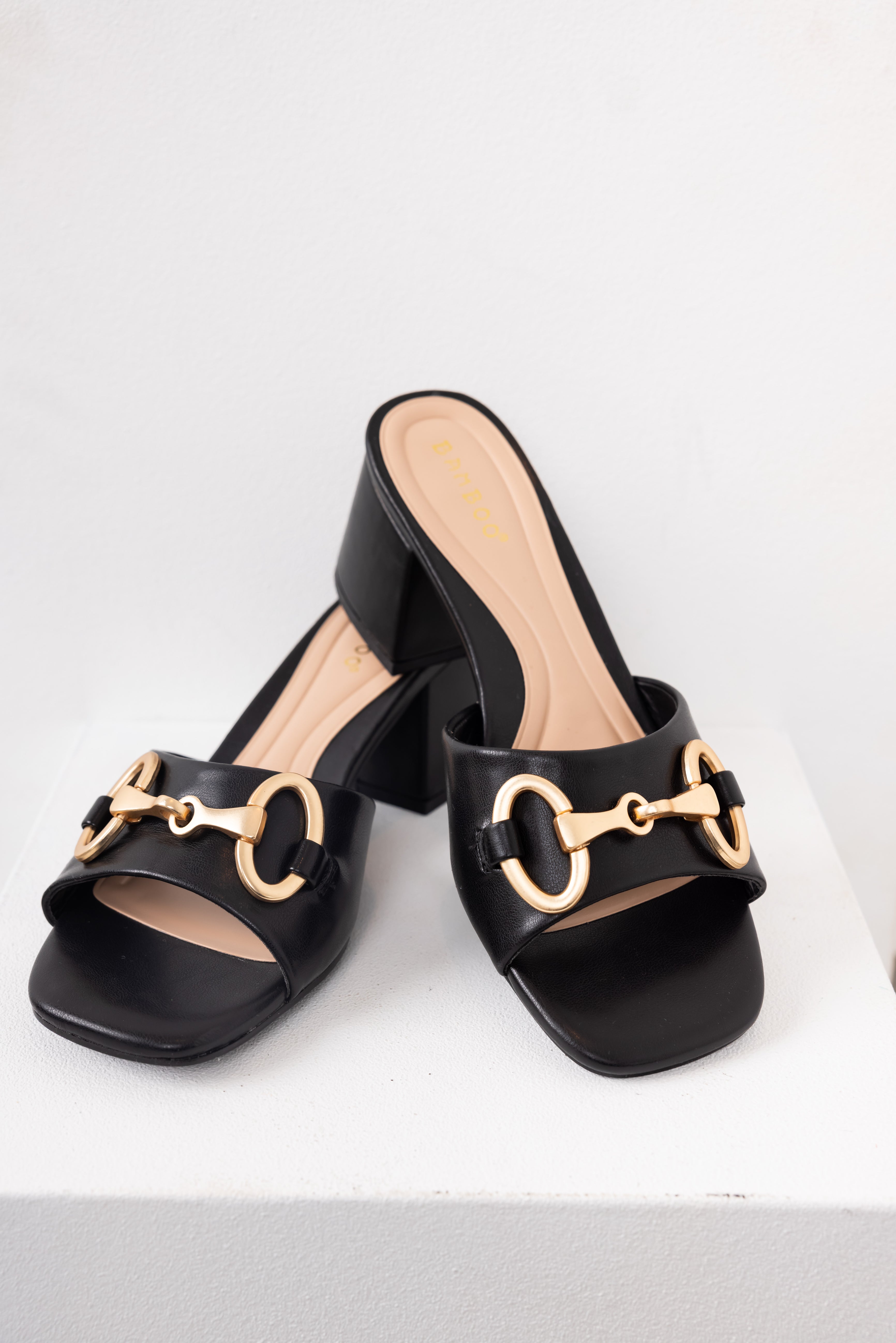 Black Chain Detail Block Heel Mules