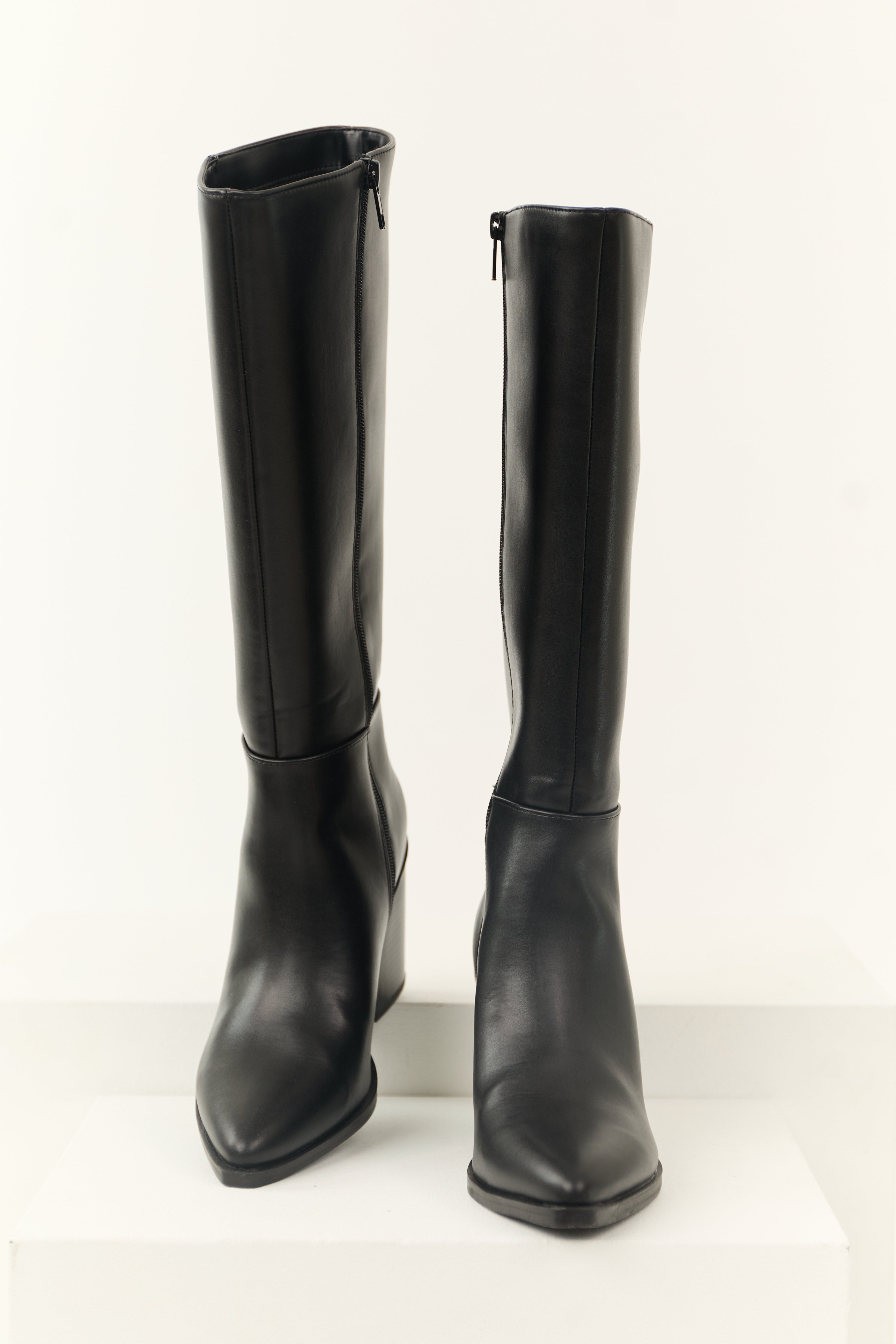 Black Faux Leather Pointed Toe Boots