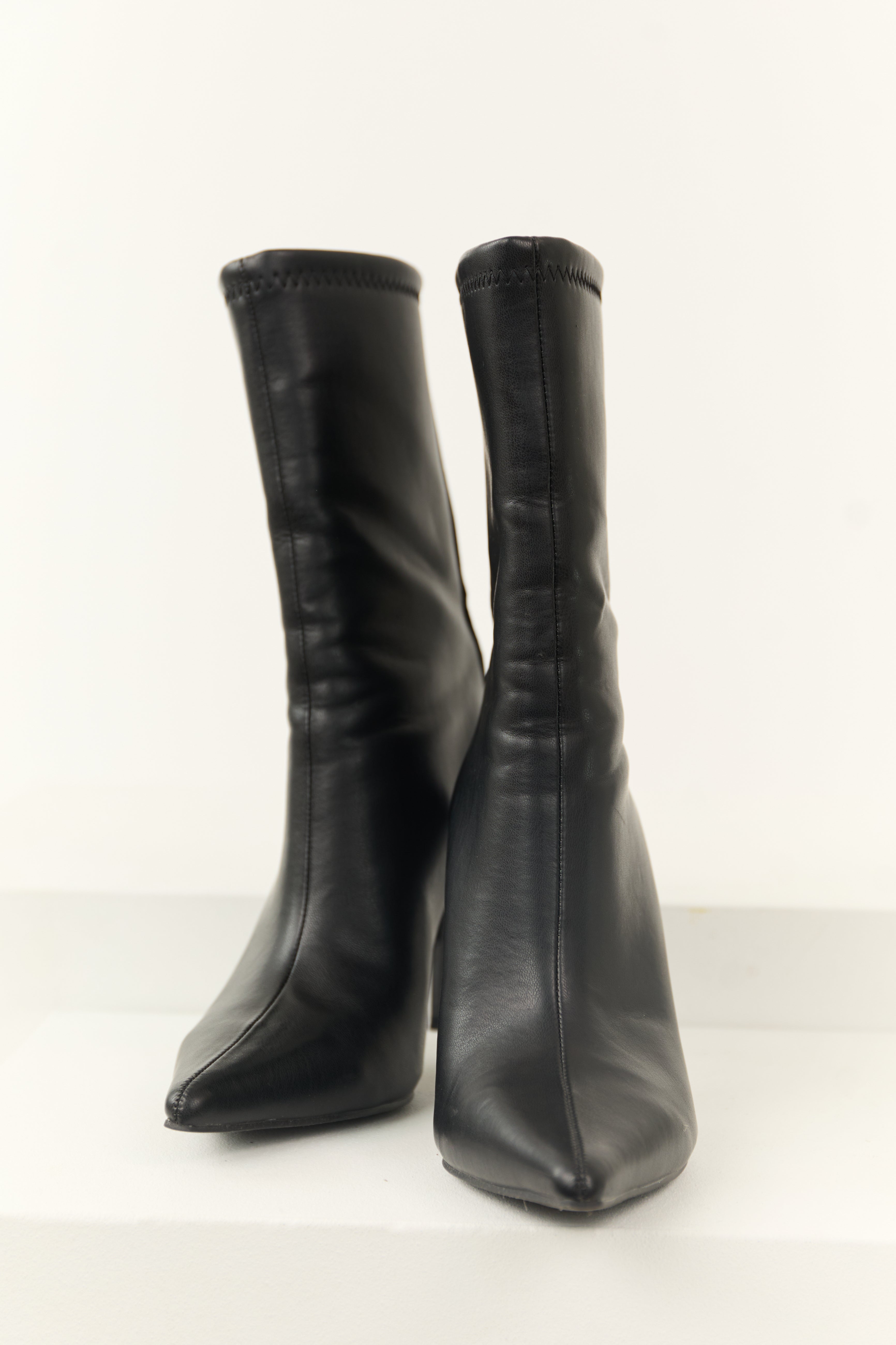 Black Faux Leather Stiletto Pointed Toe Boots