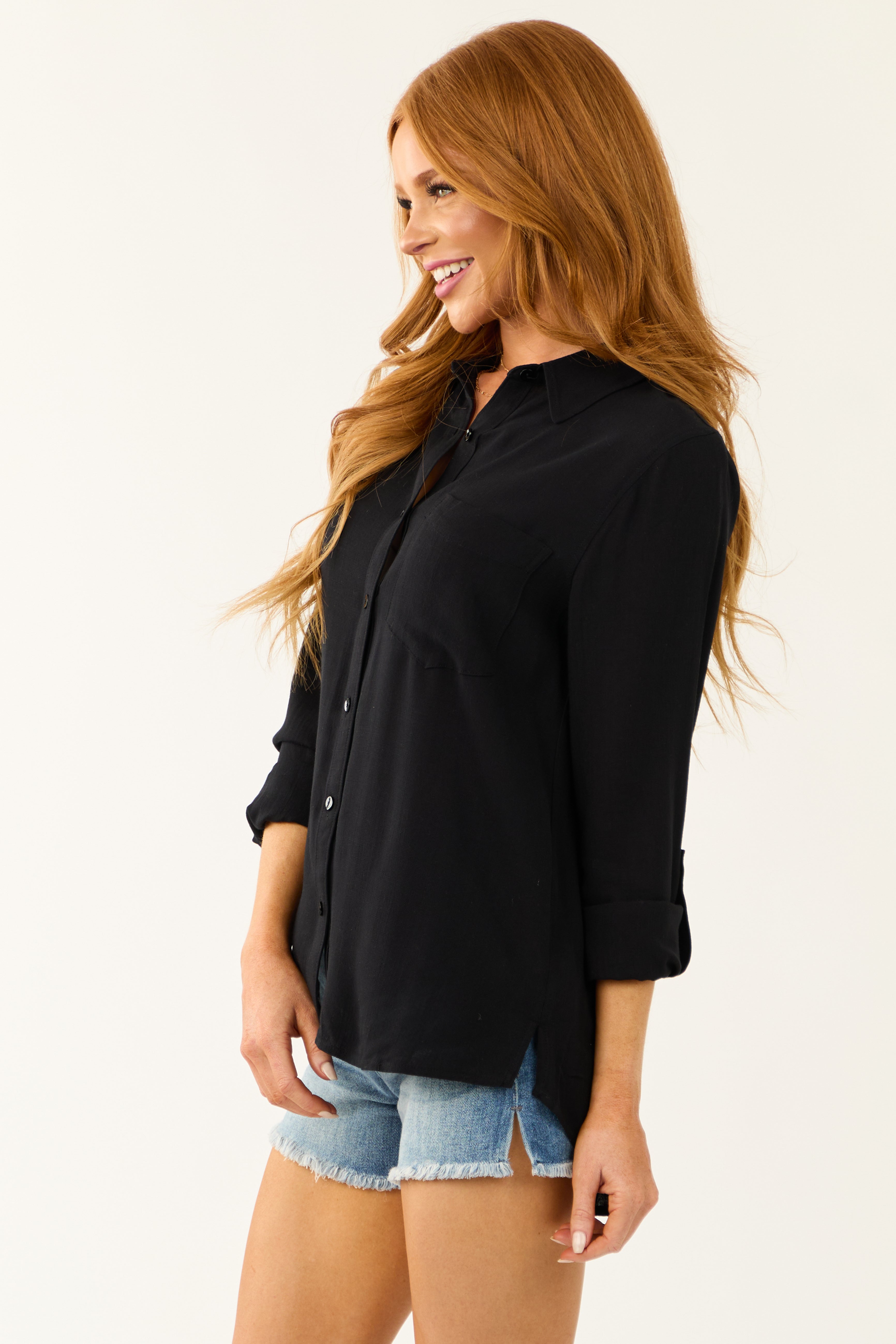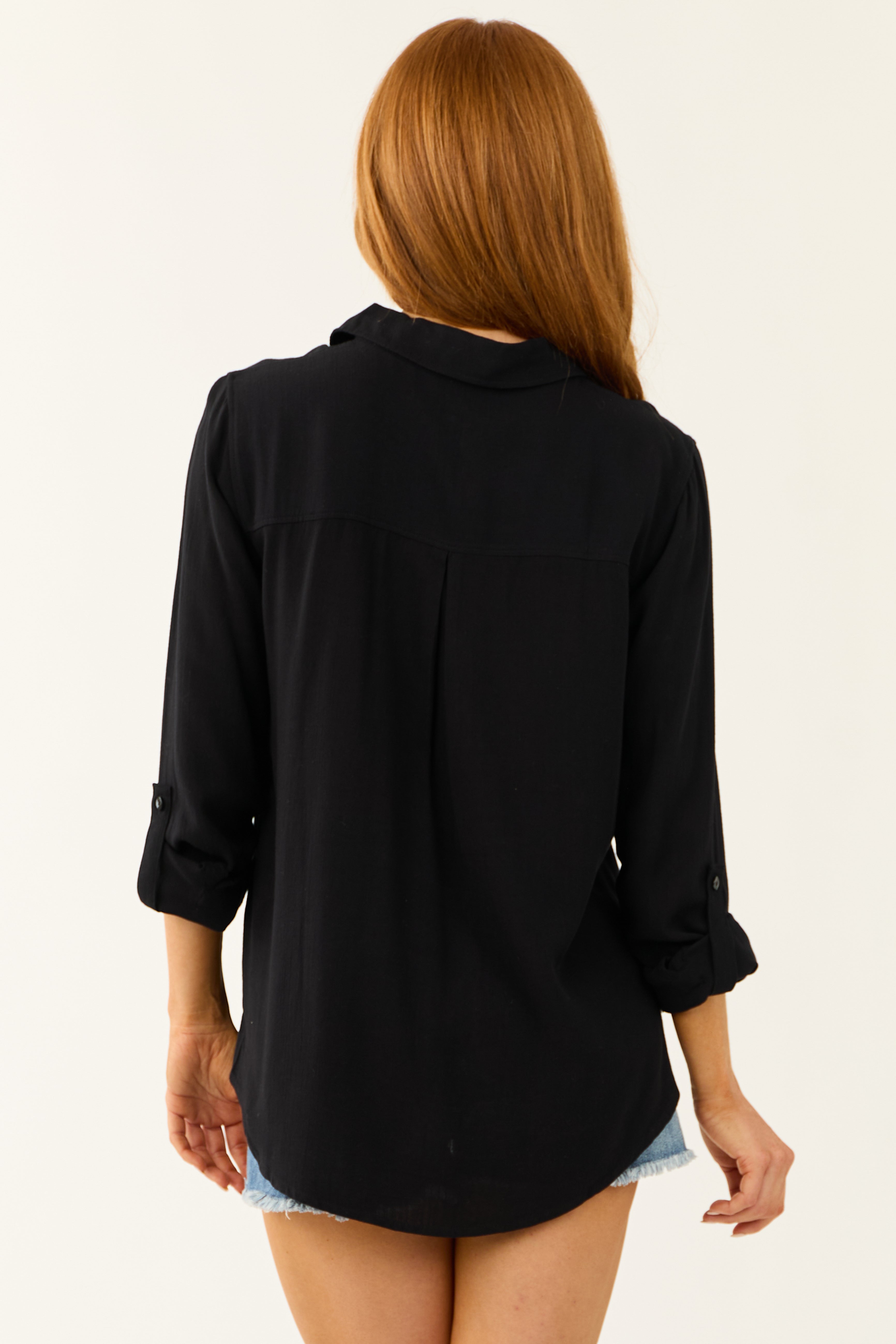 - Rolled cuff option with button fastener