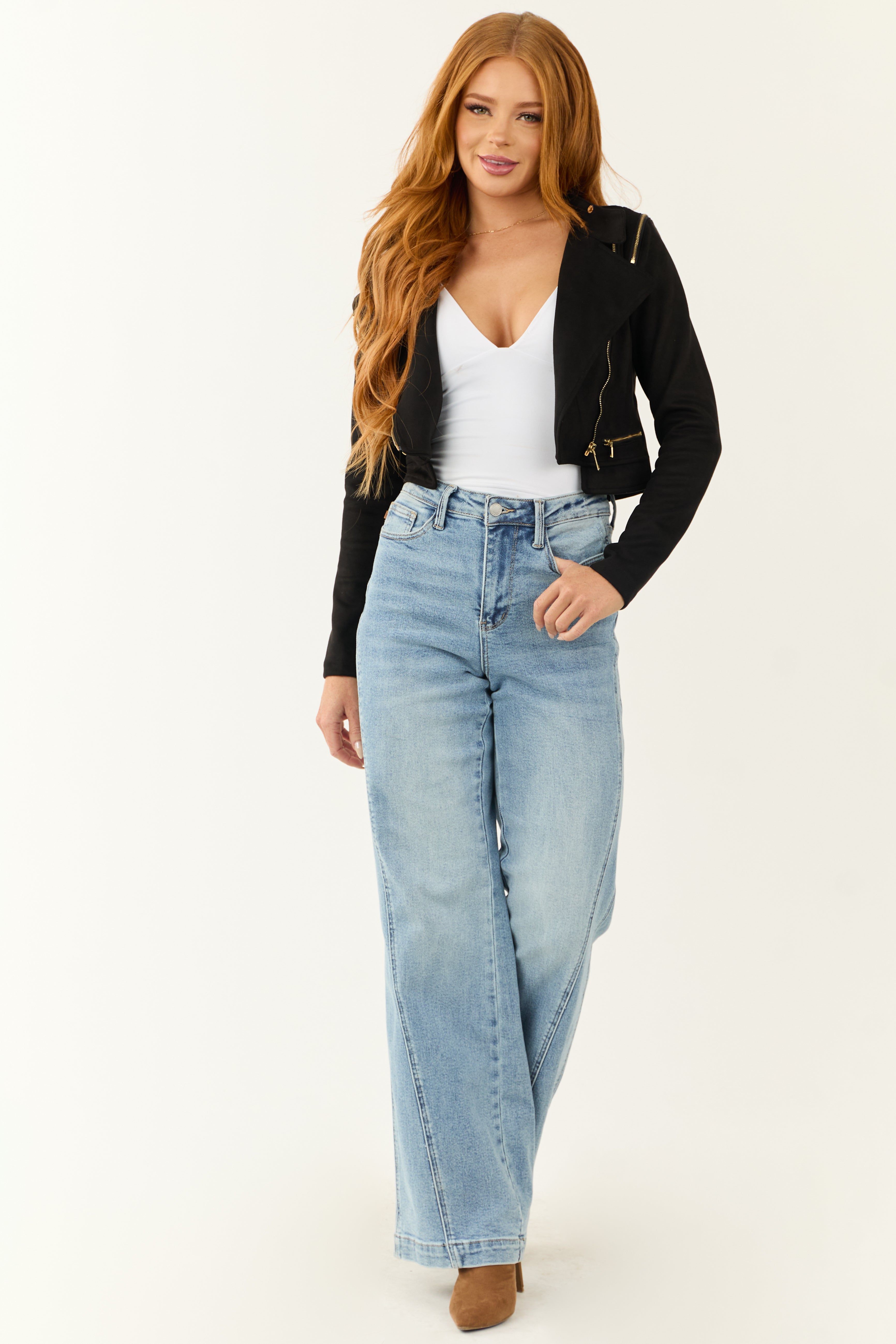 - Gold zipper details