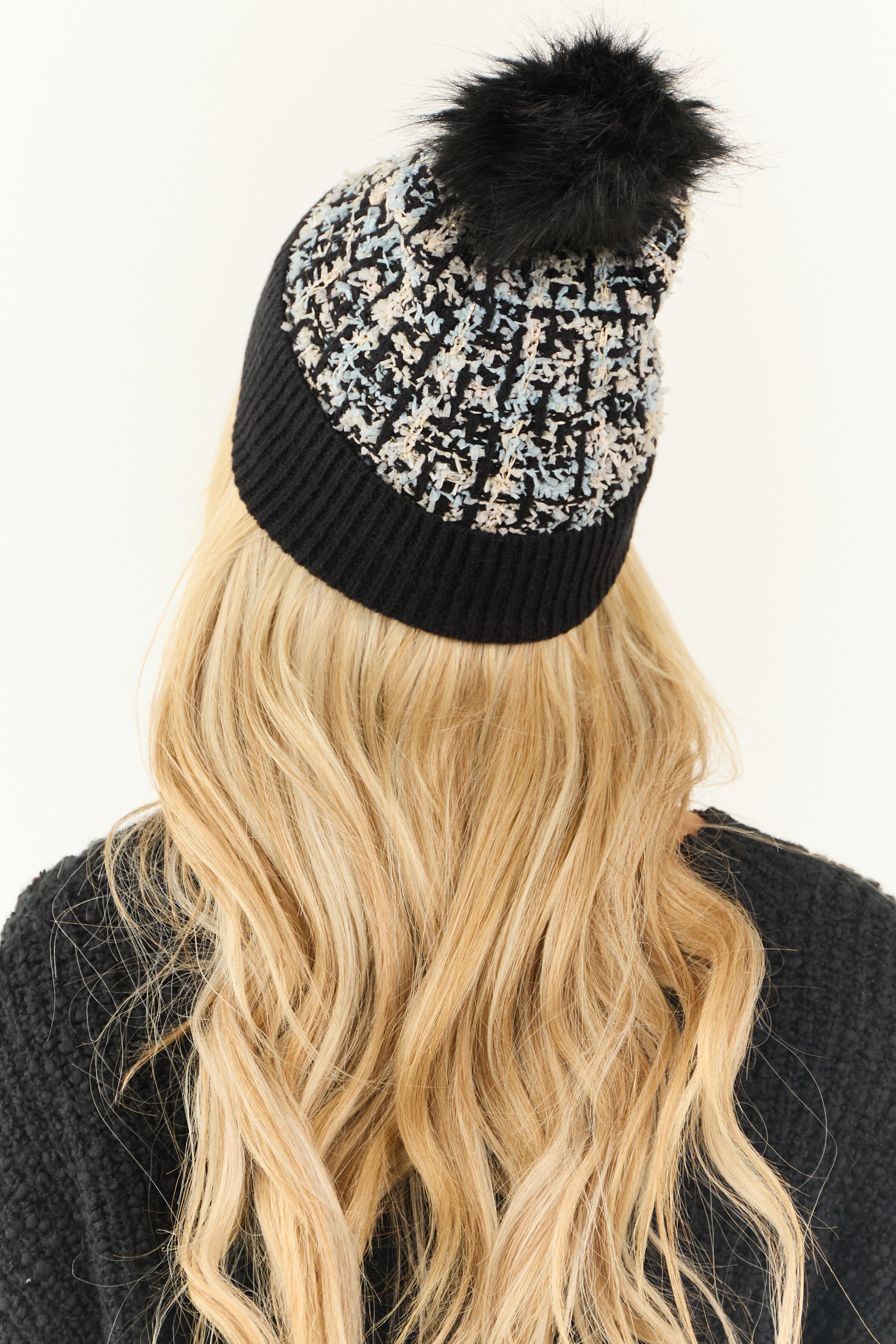 Faux tweed in the shades of Pastel Blue. Ivory. and Metallic Gold