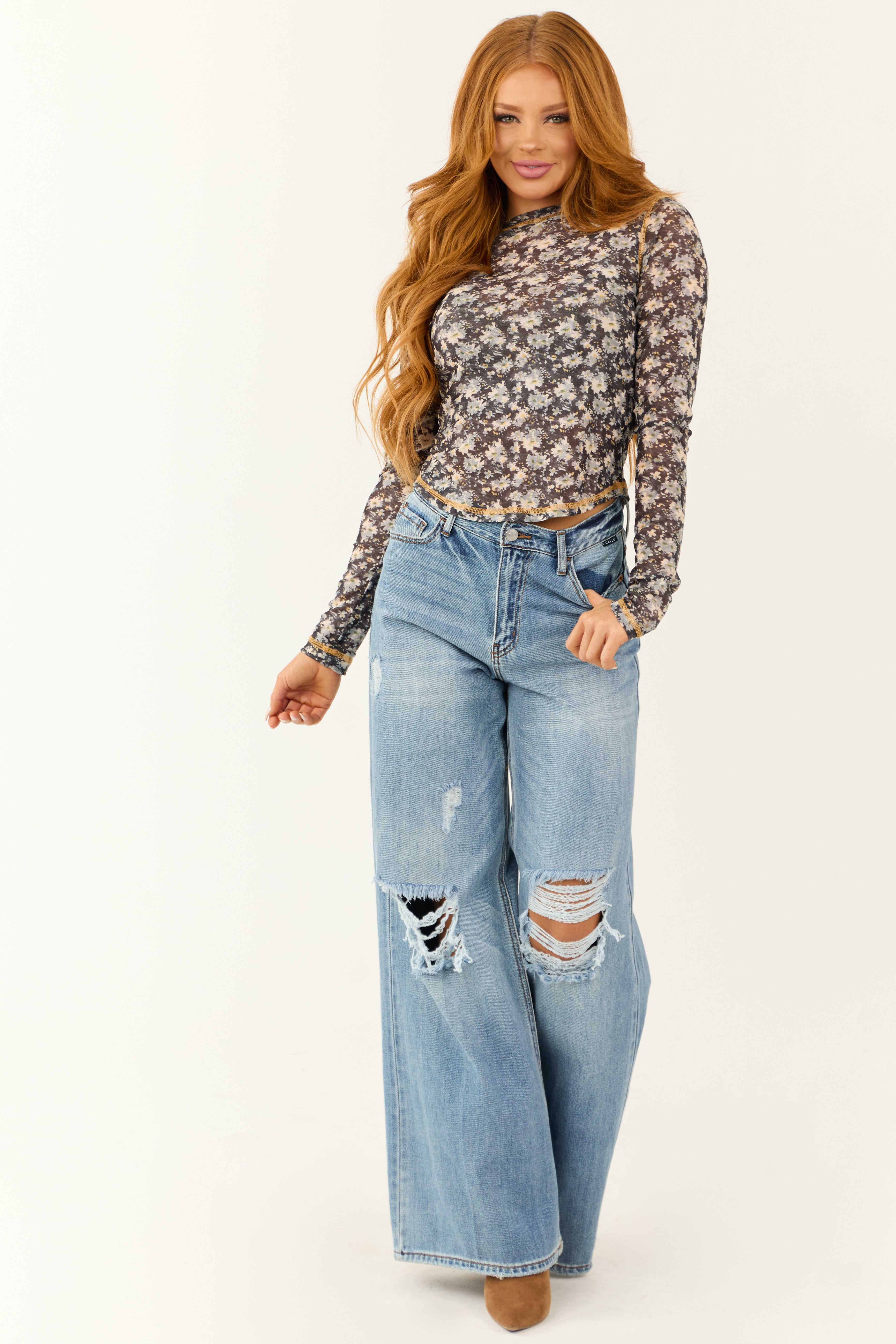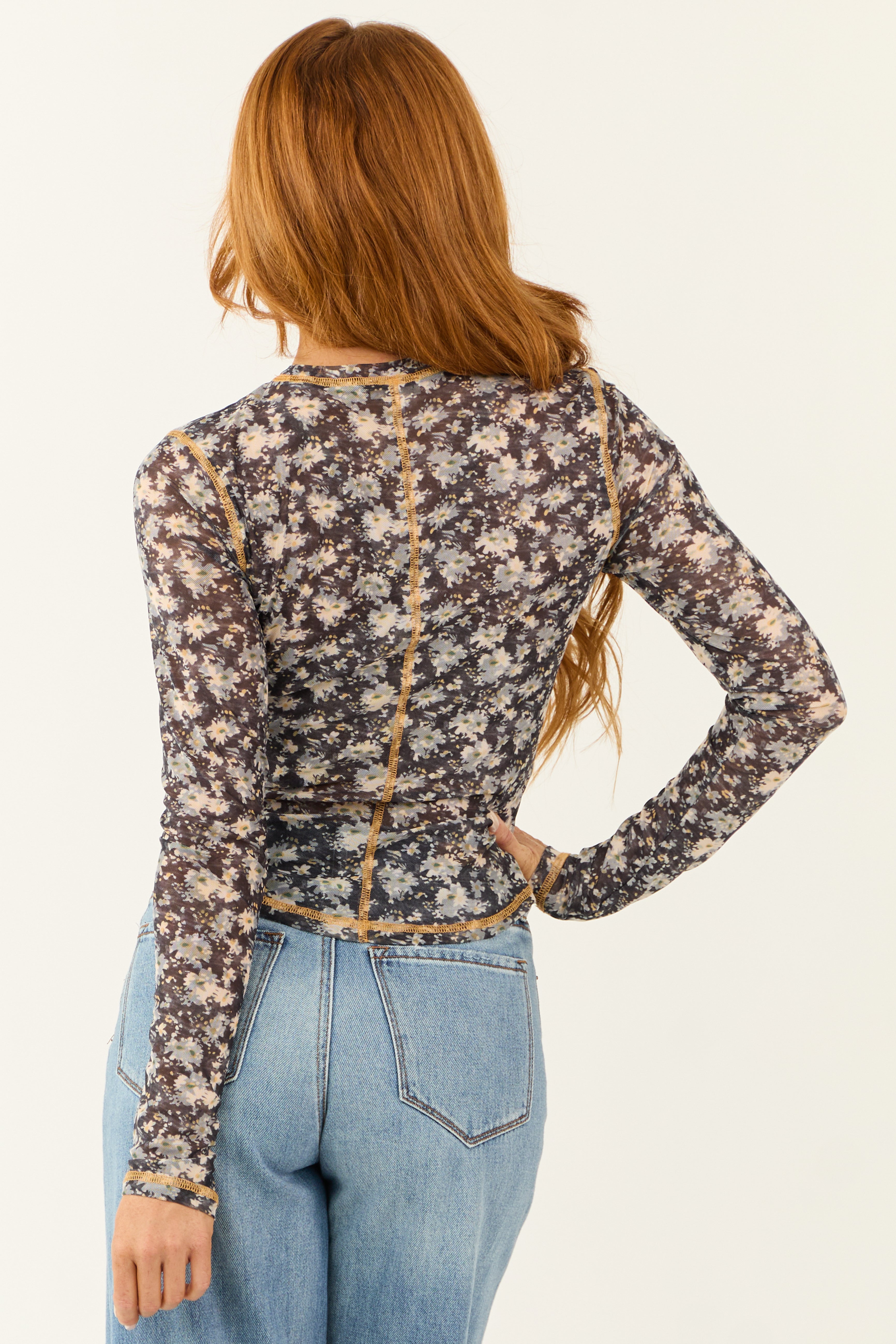 - Floral print in the shades Black. Powder Blue. Cream. Amber. and Hunter Green