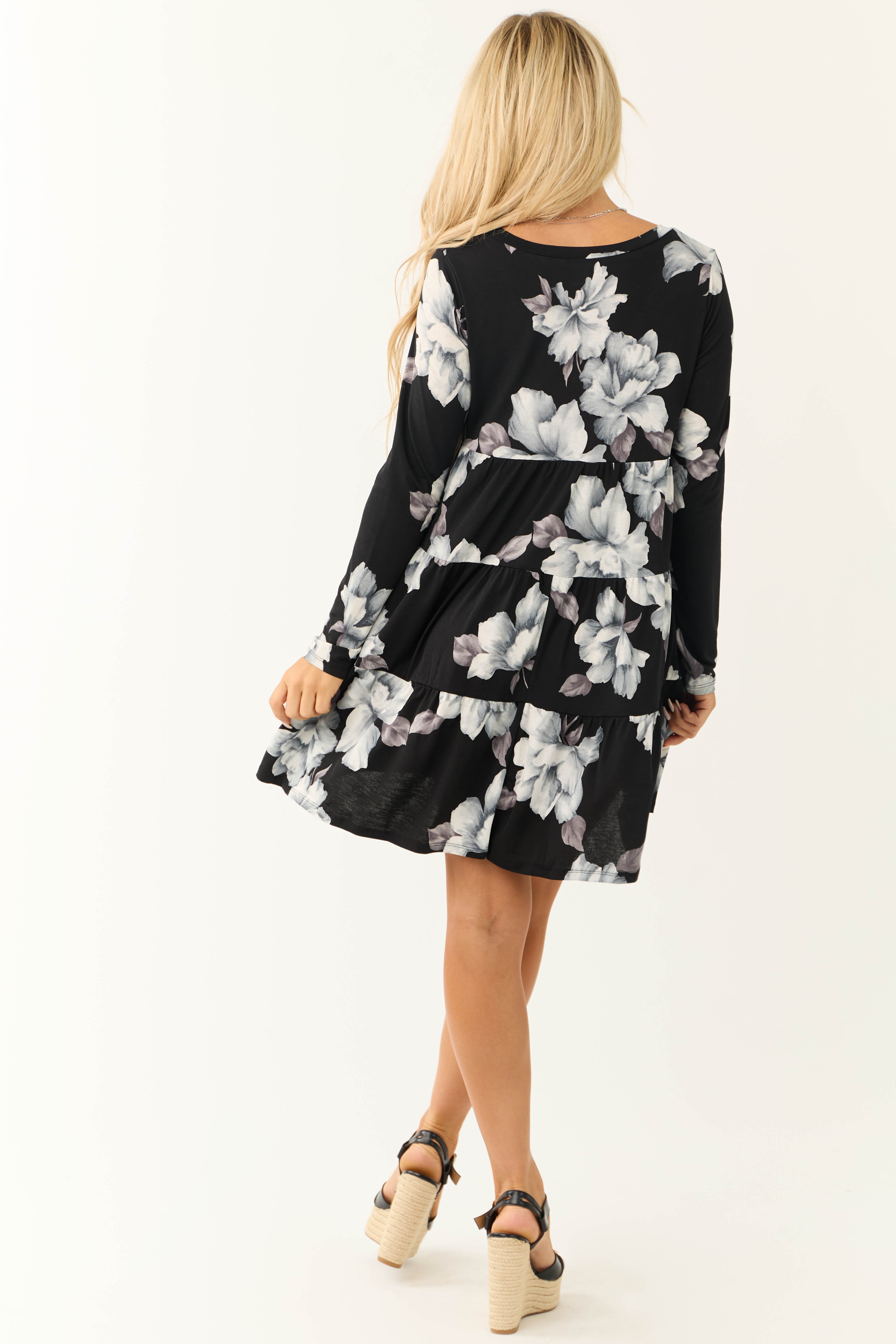 - Floral print in shades of Black. Off White. Slate. and Stone