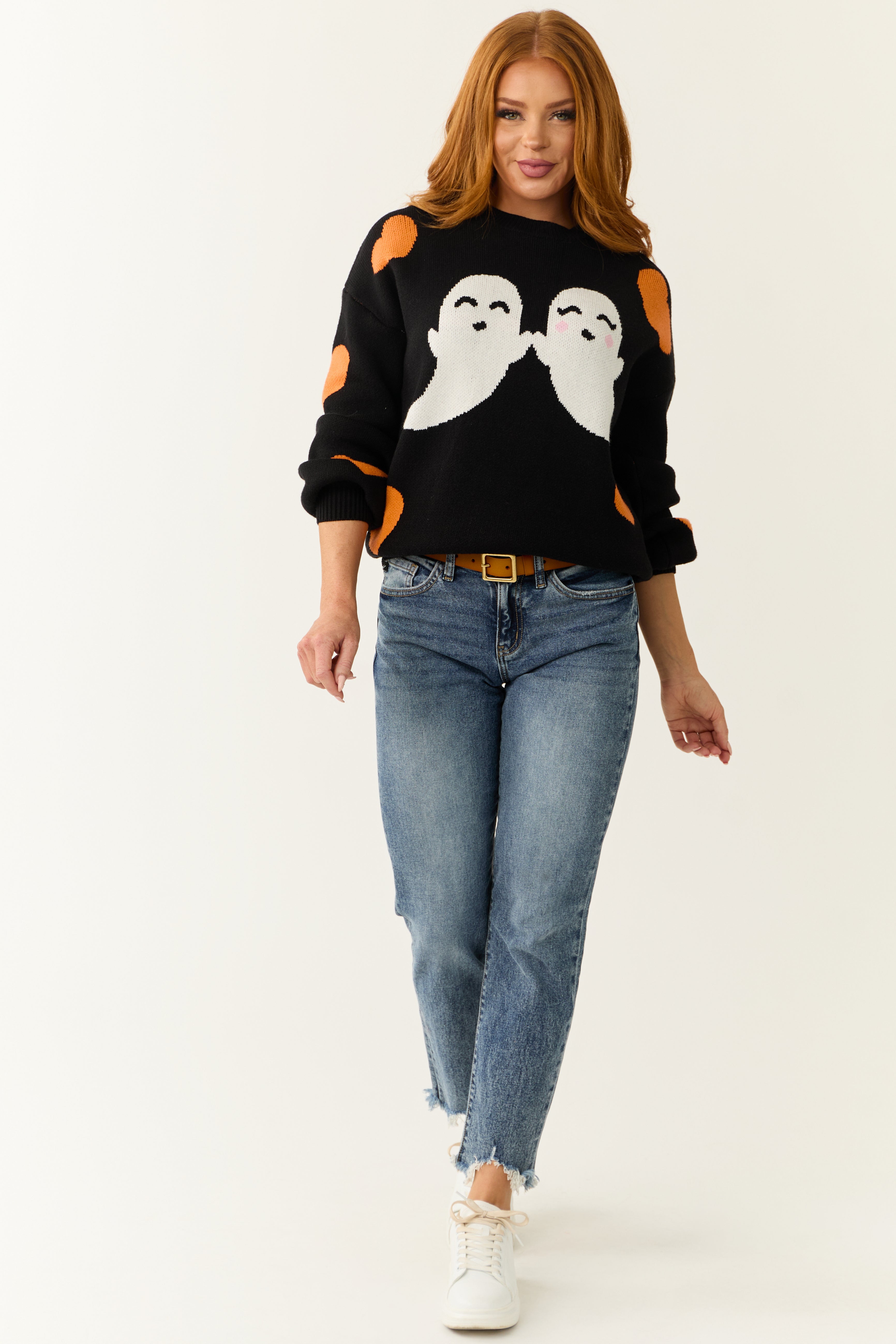 - Halloween graphic in the shades of Pumpkin. White. and Baby Pink