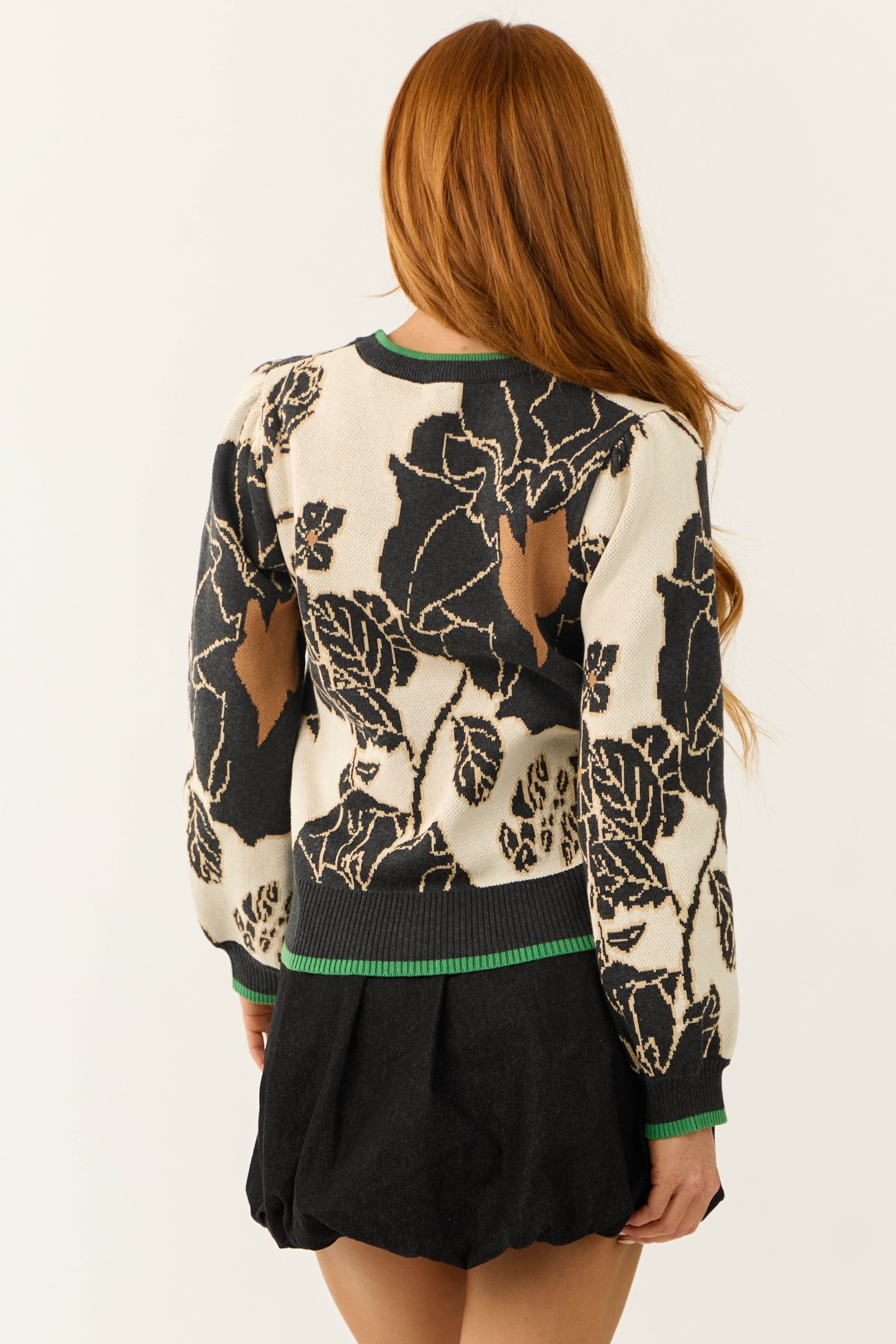 - Floral in shades of Black. Ivory. Beige. and Copper