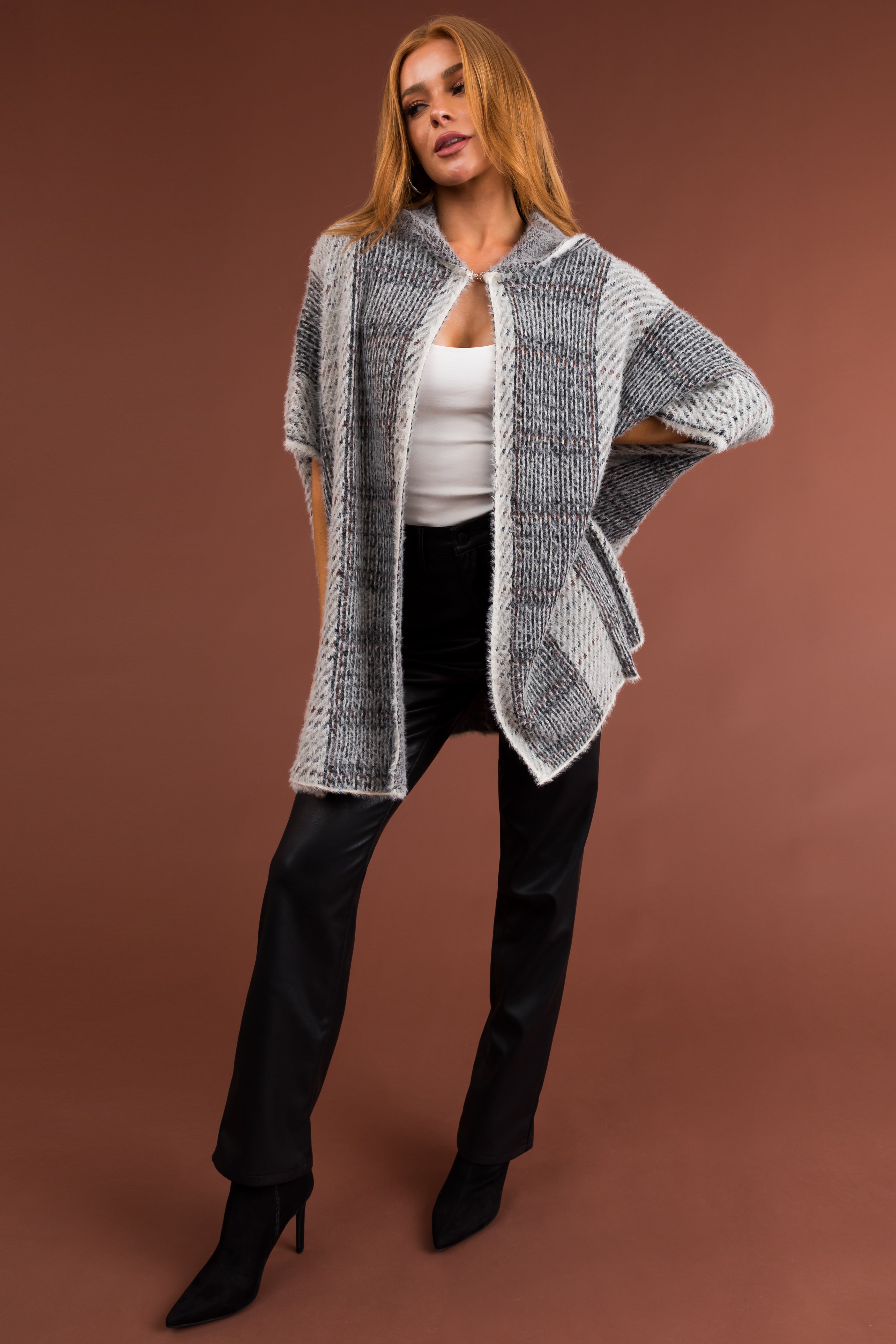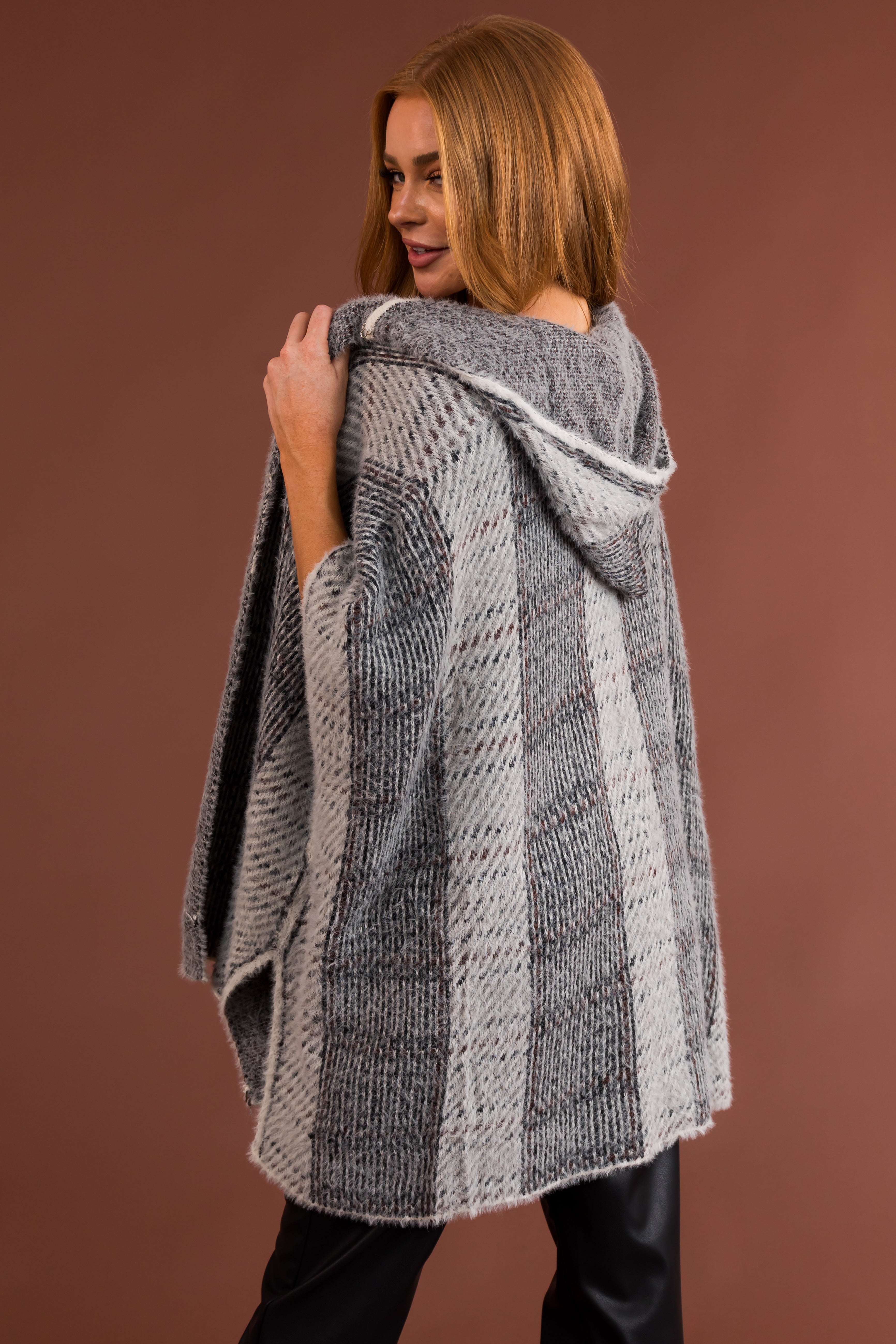 - Abstract print in shades of Black. Ivory. Dove Grey. and Cinnamon
