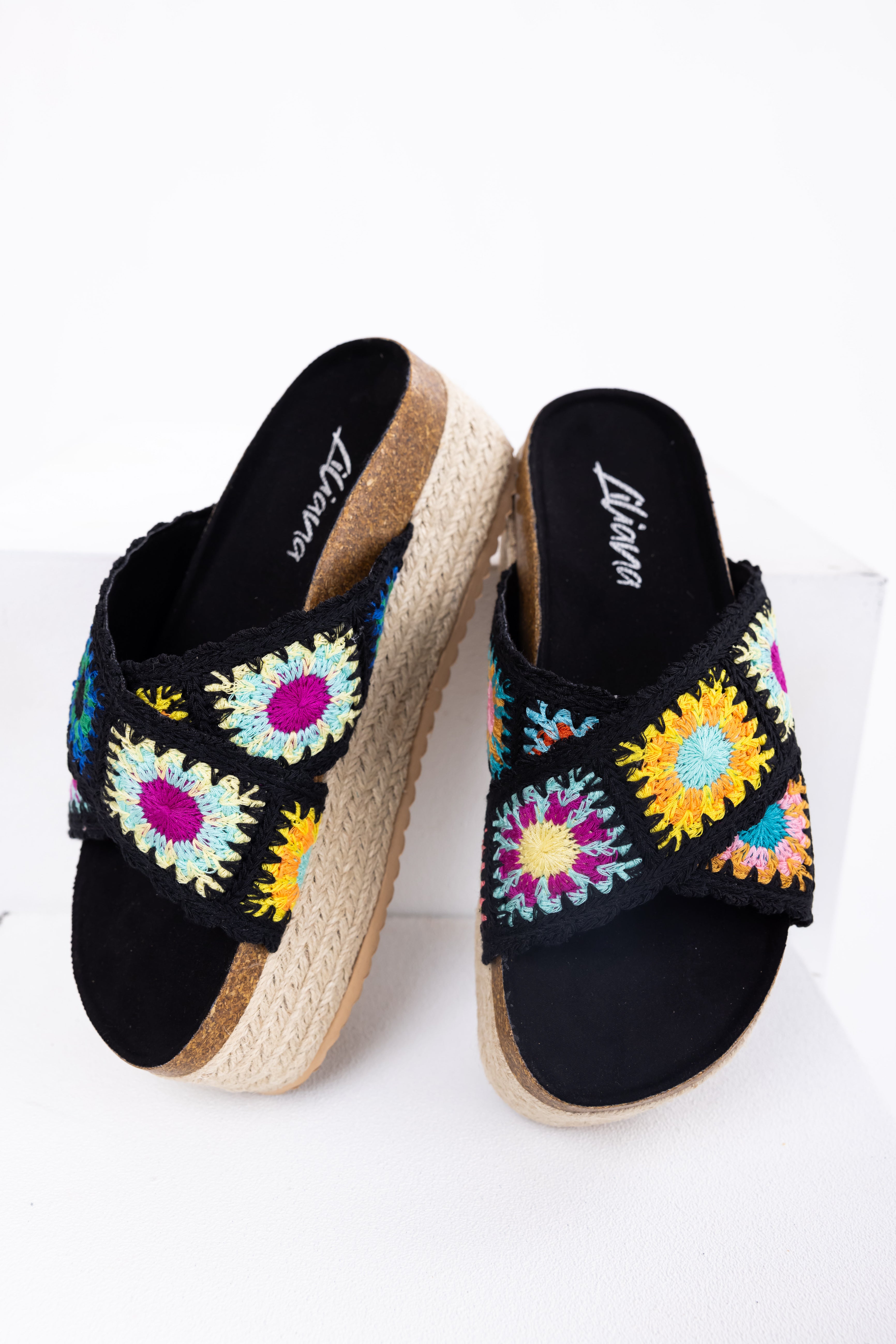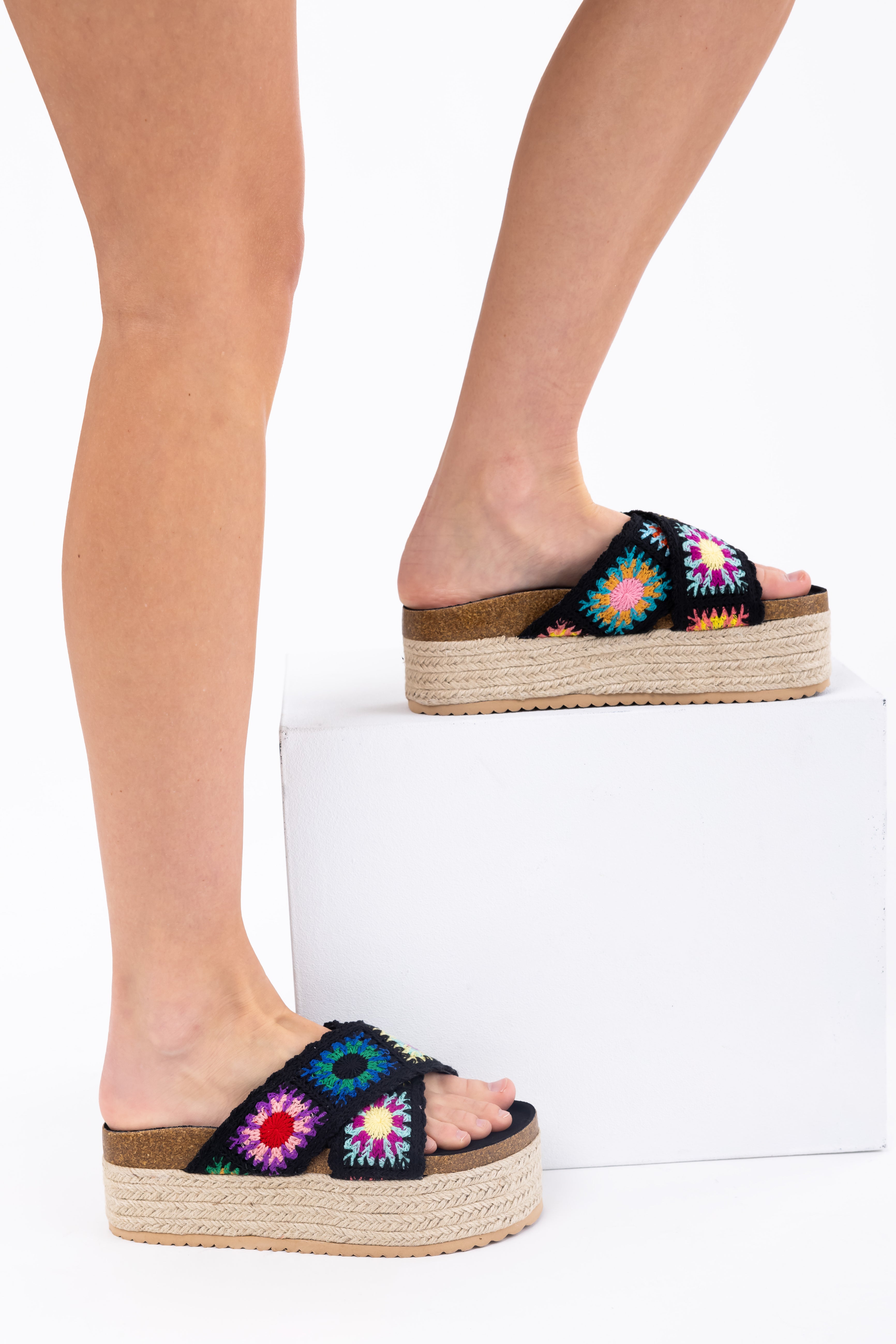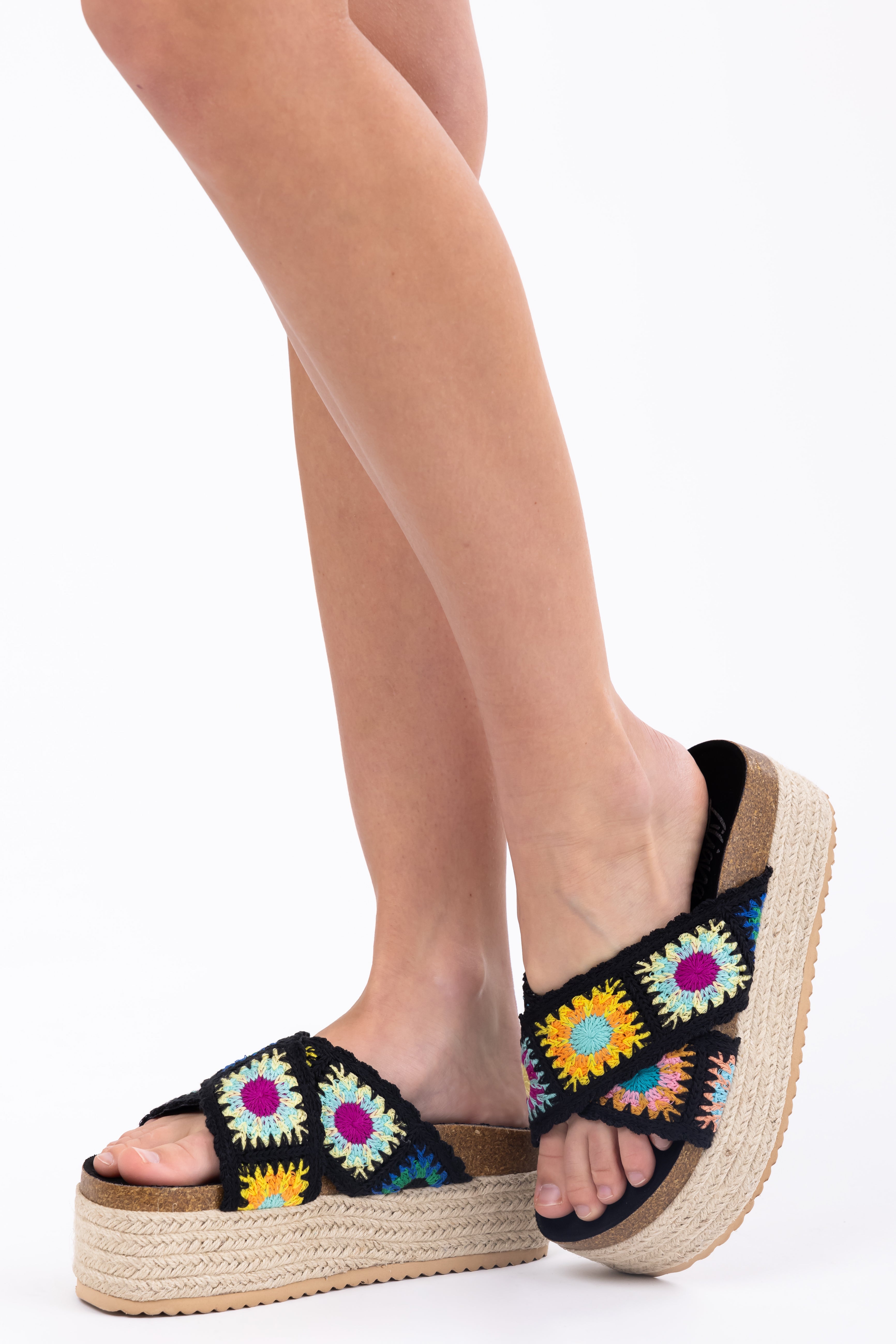 Black Multicolor Crochet Espadrille Sandals
