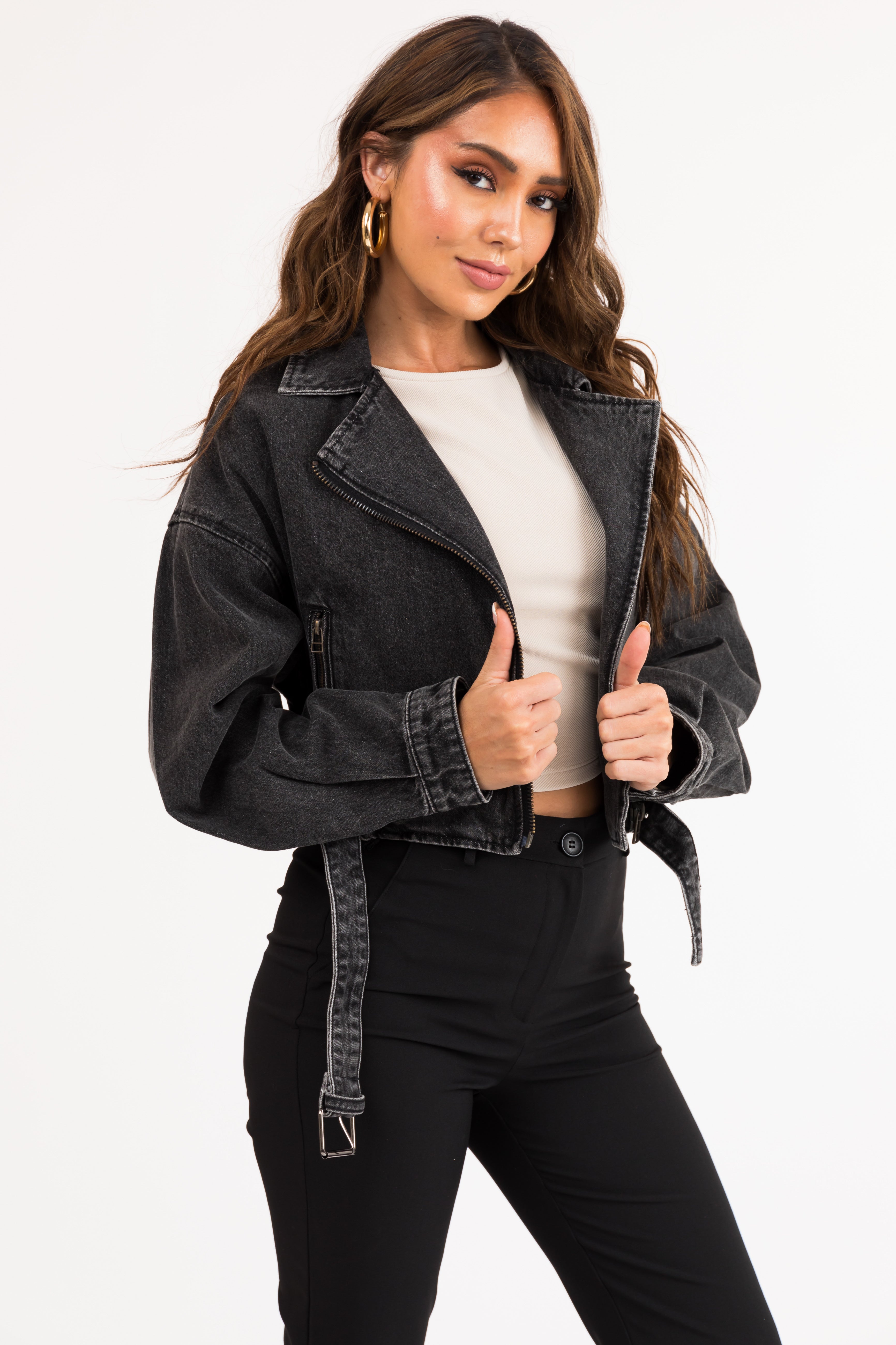 - Belt with buckle around hemline