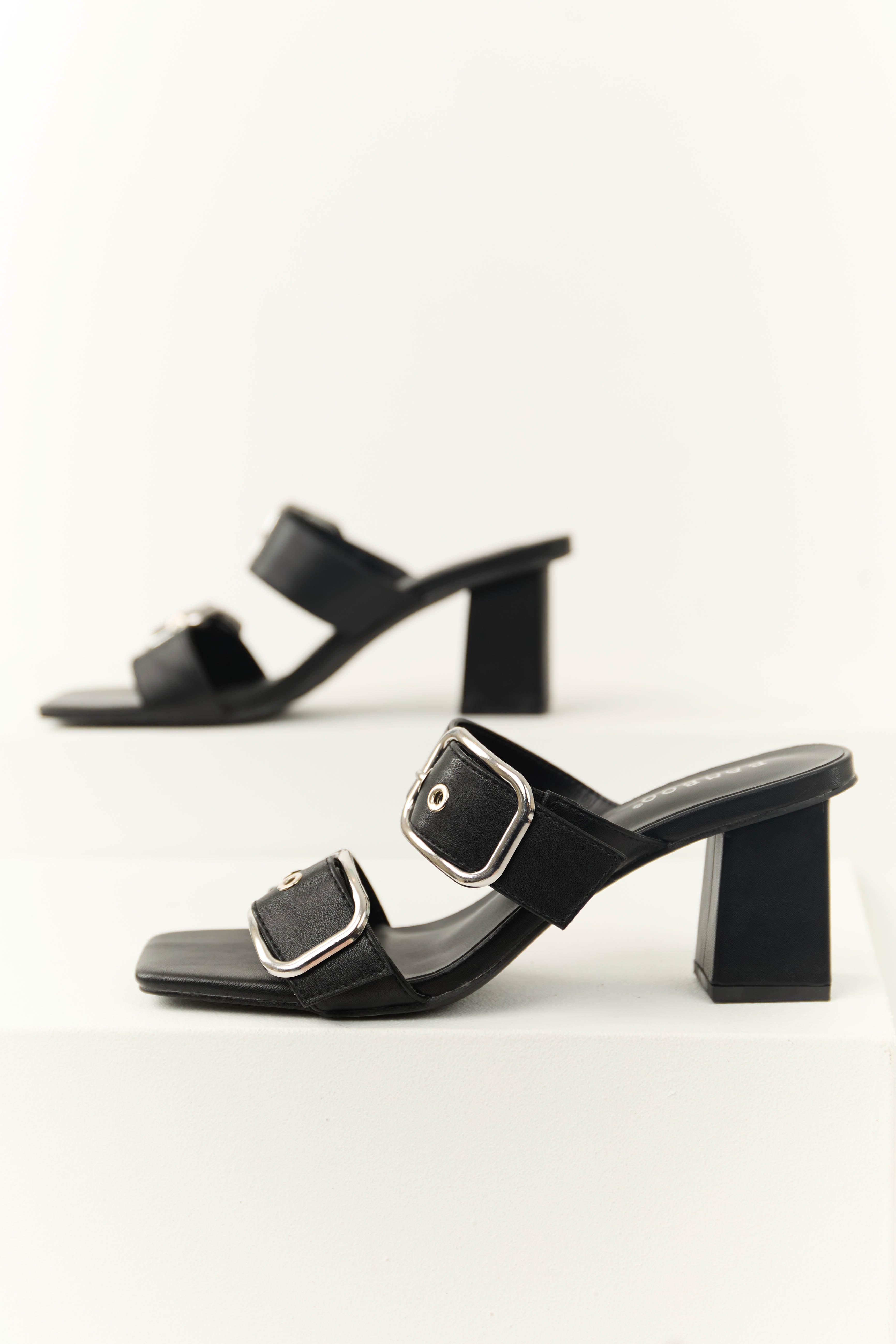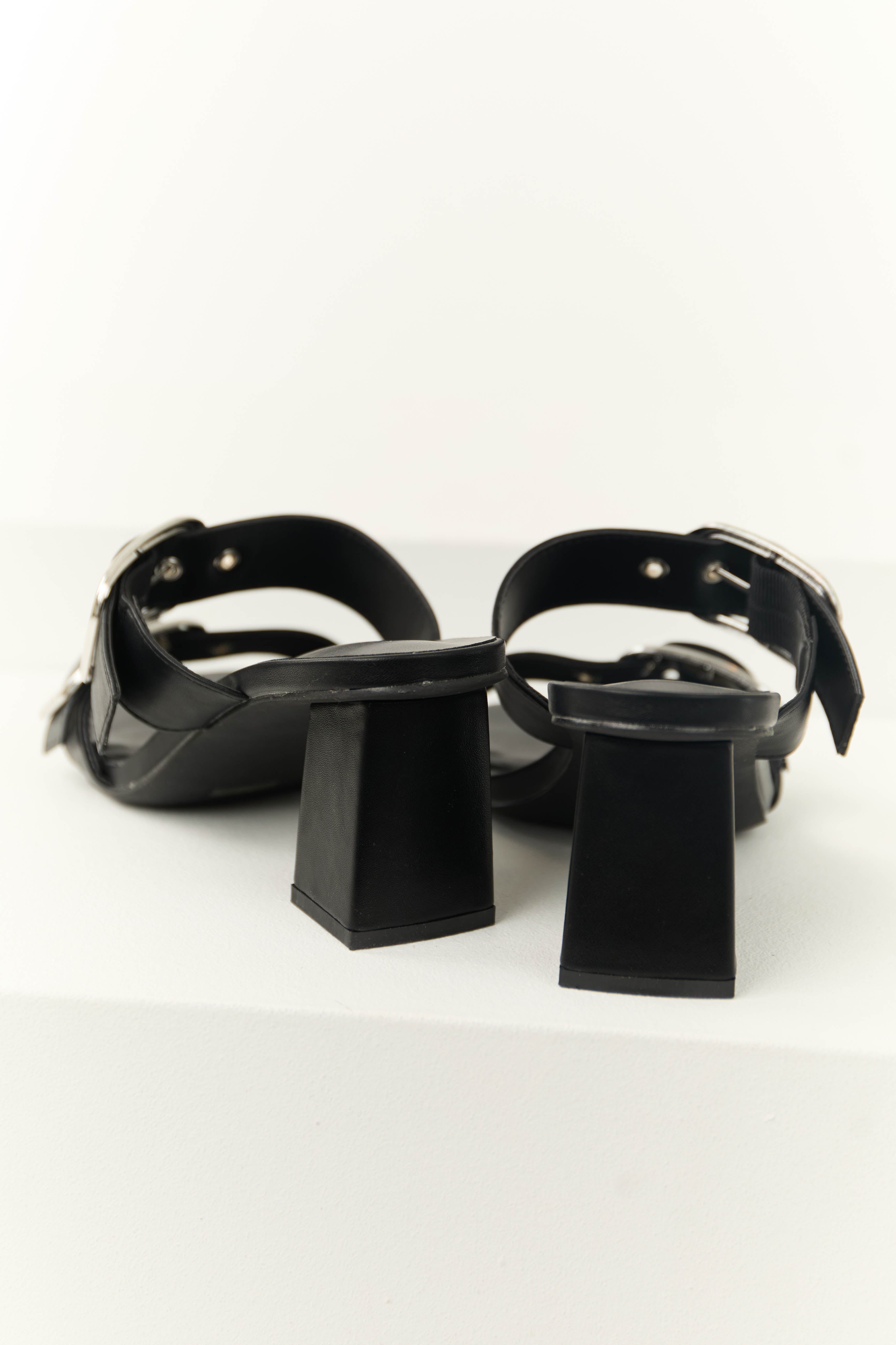 Black Open Toed Double Buckle Strap Heels