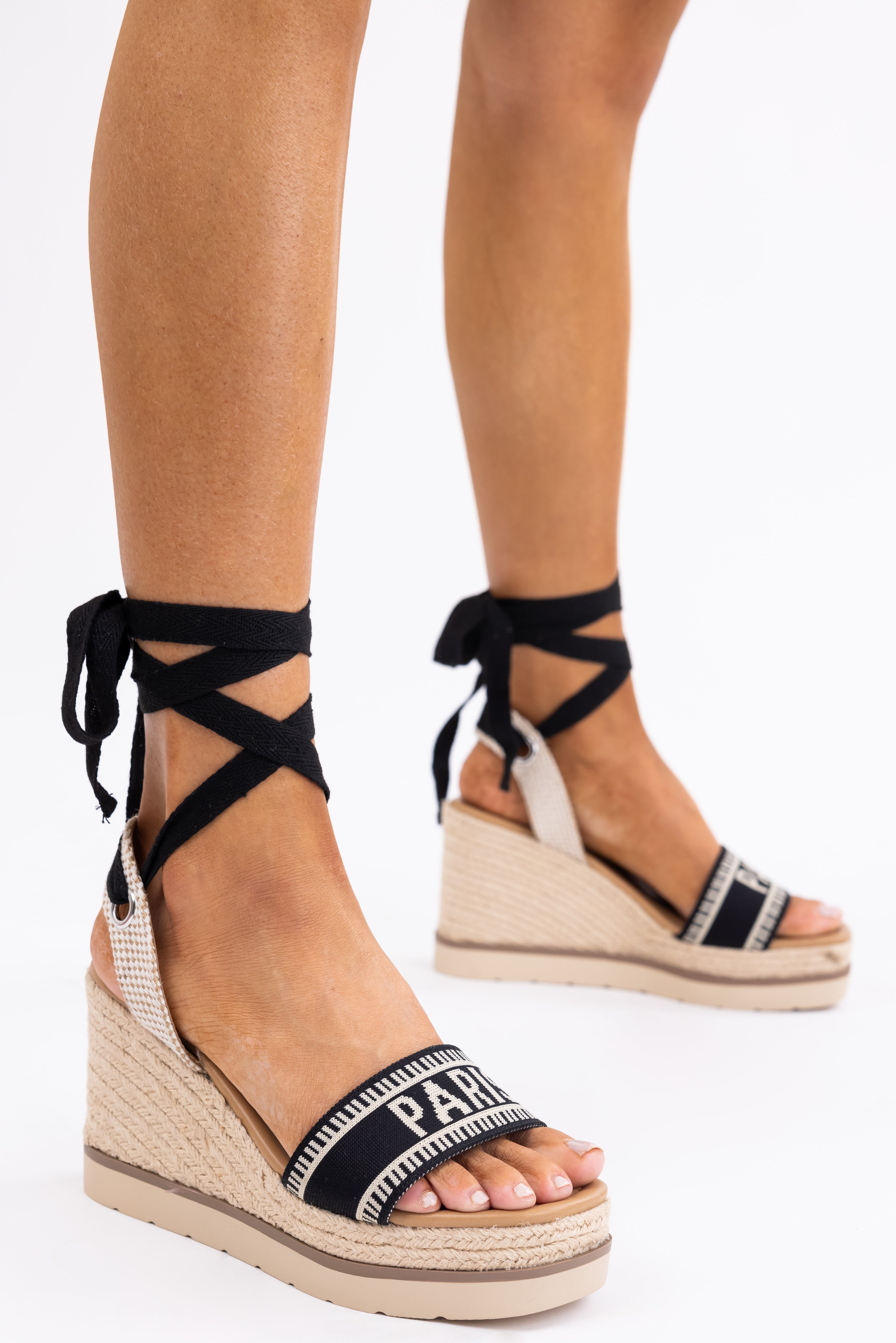 Black 'Paris' Espadrille Platform Wedges