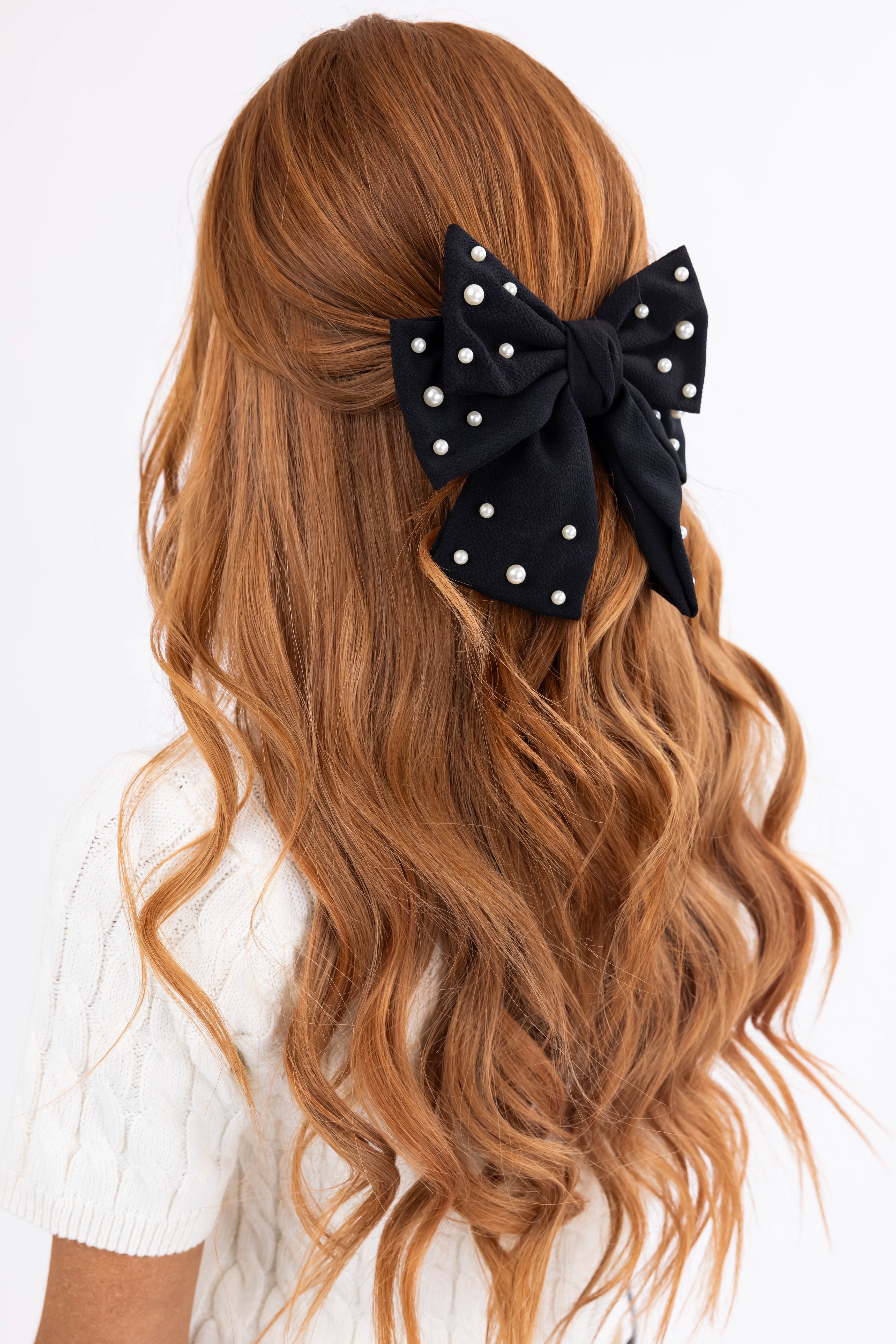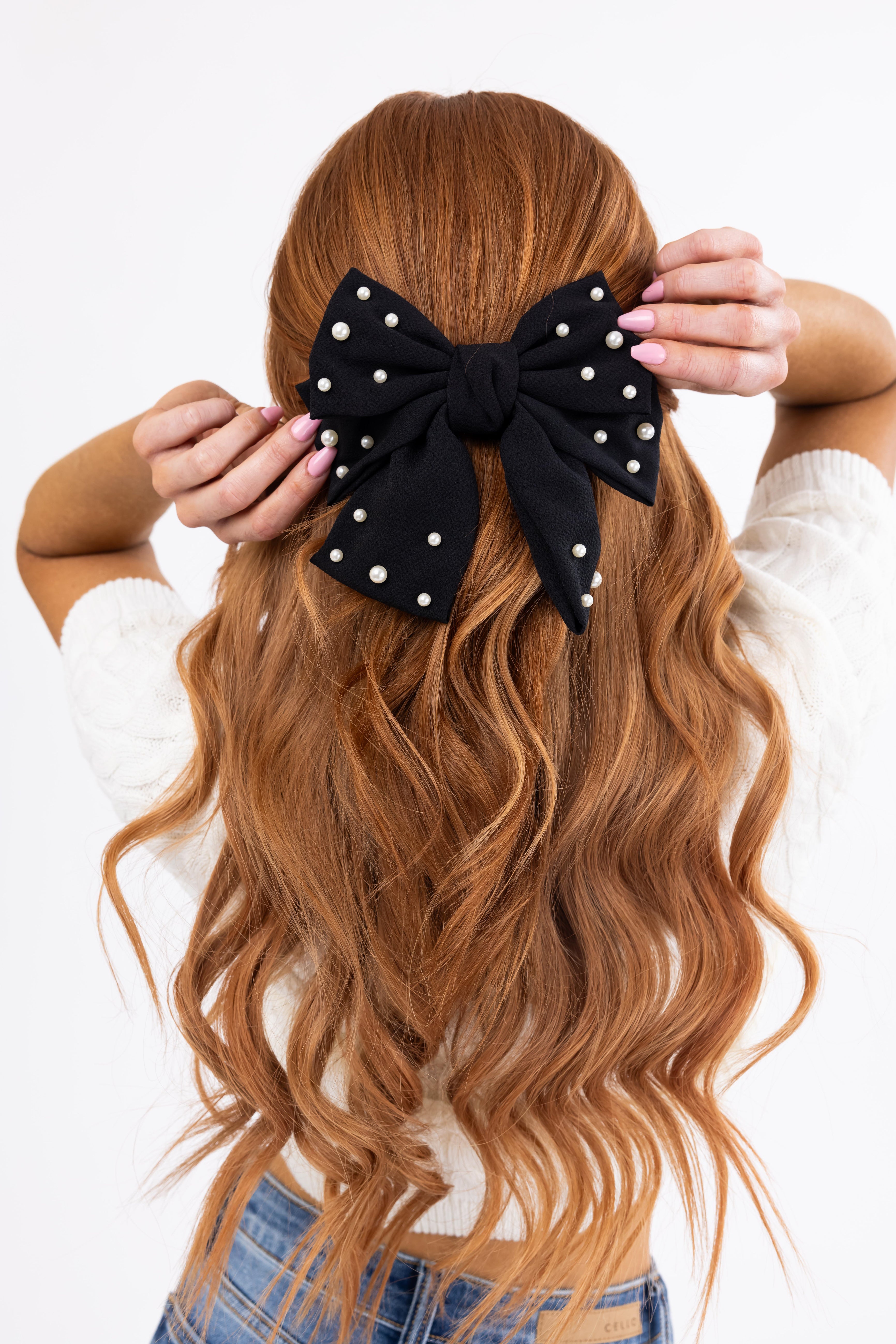 Black Pearl Detail Bow Hair Barrette