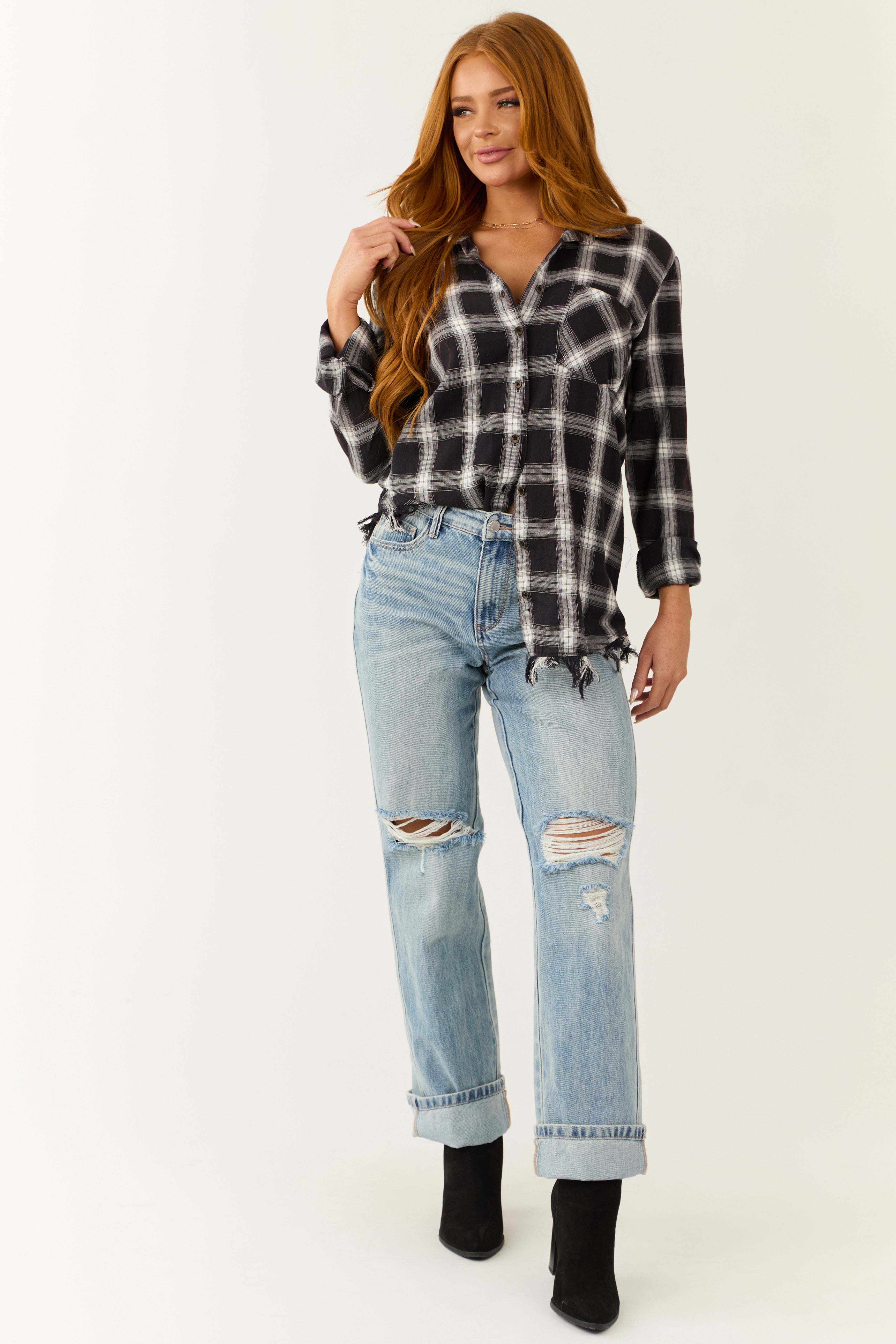 - Button down front