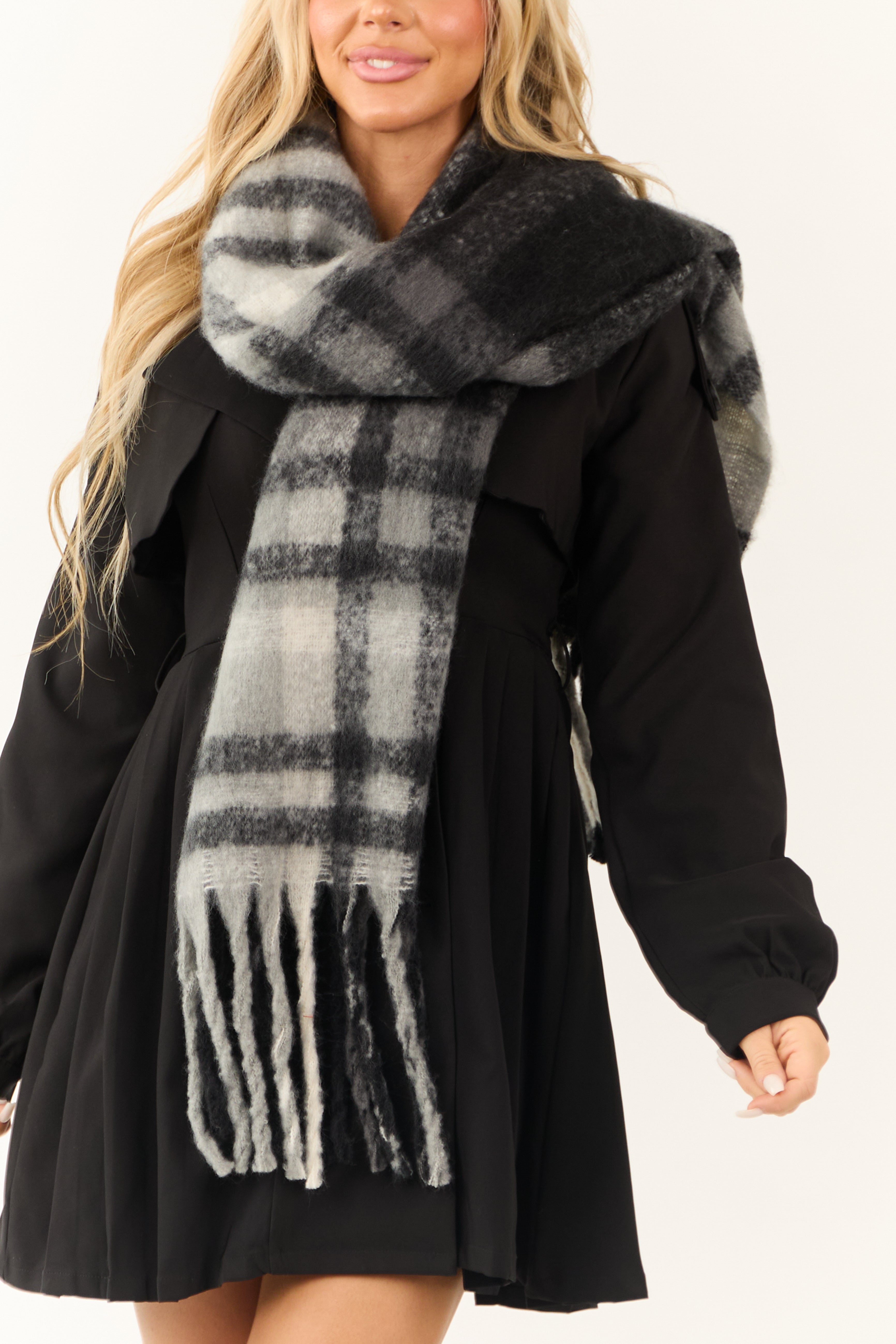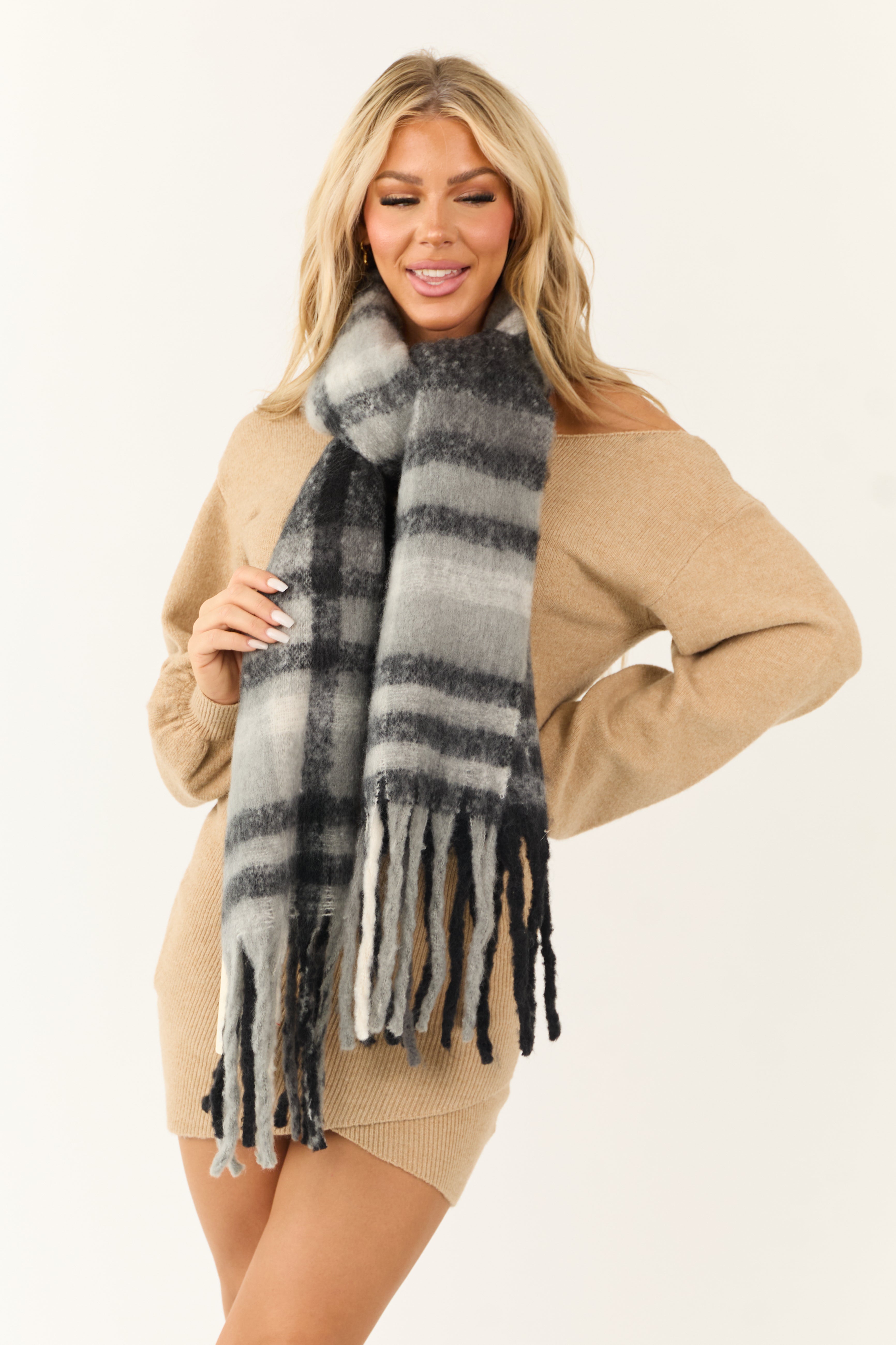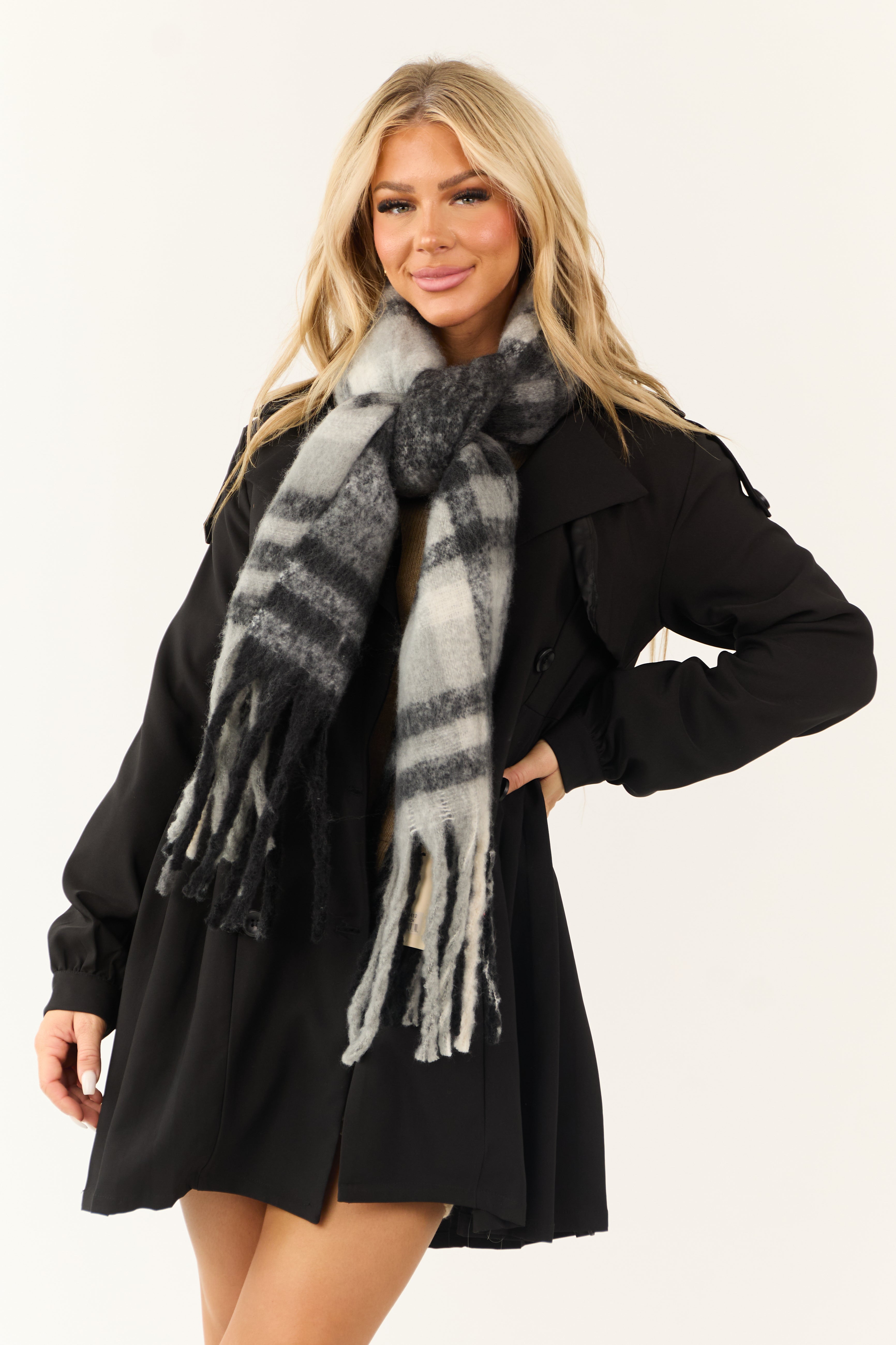 Plaid in the shades of Black. Ivory. Stone. and Dove Grey