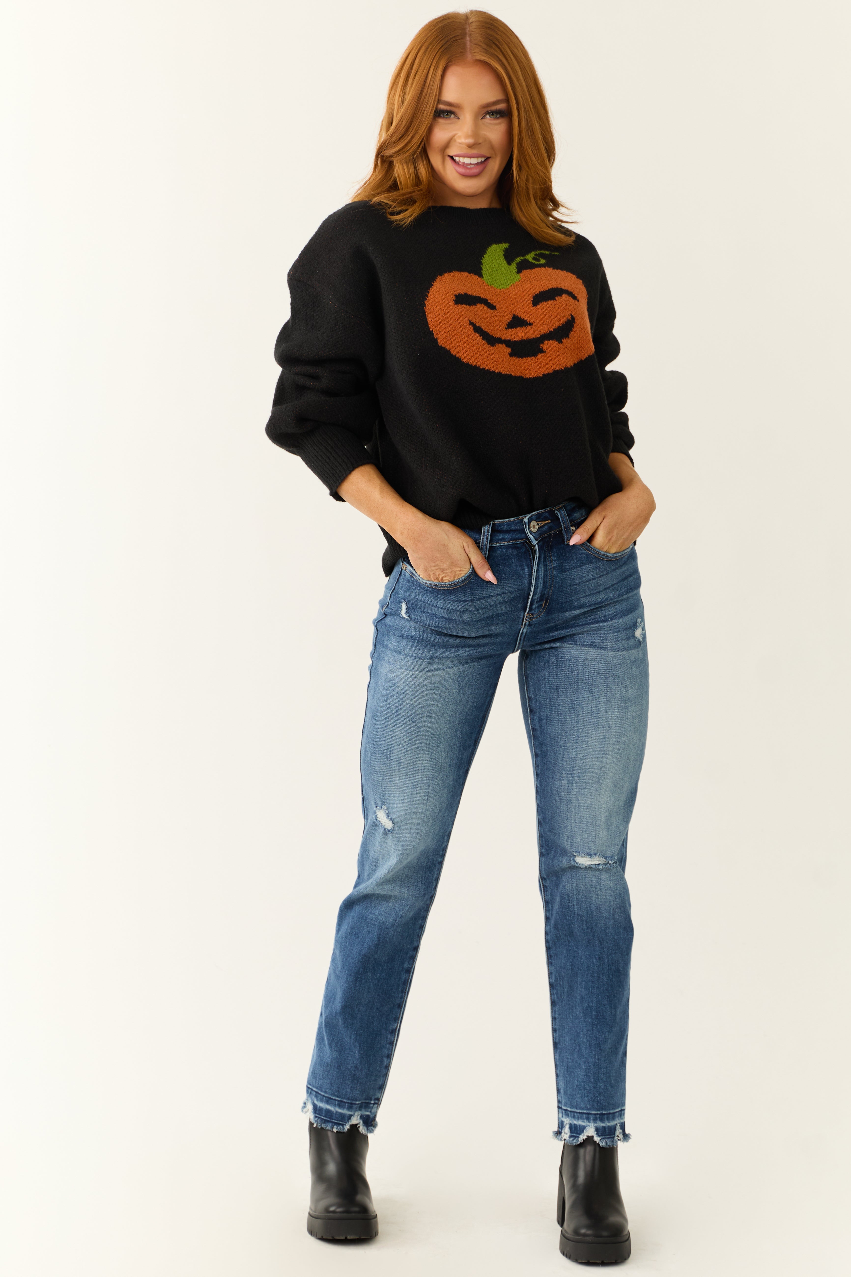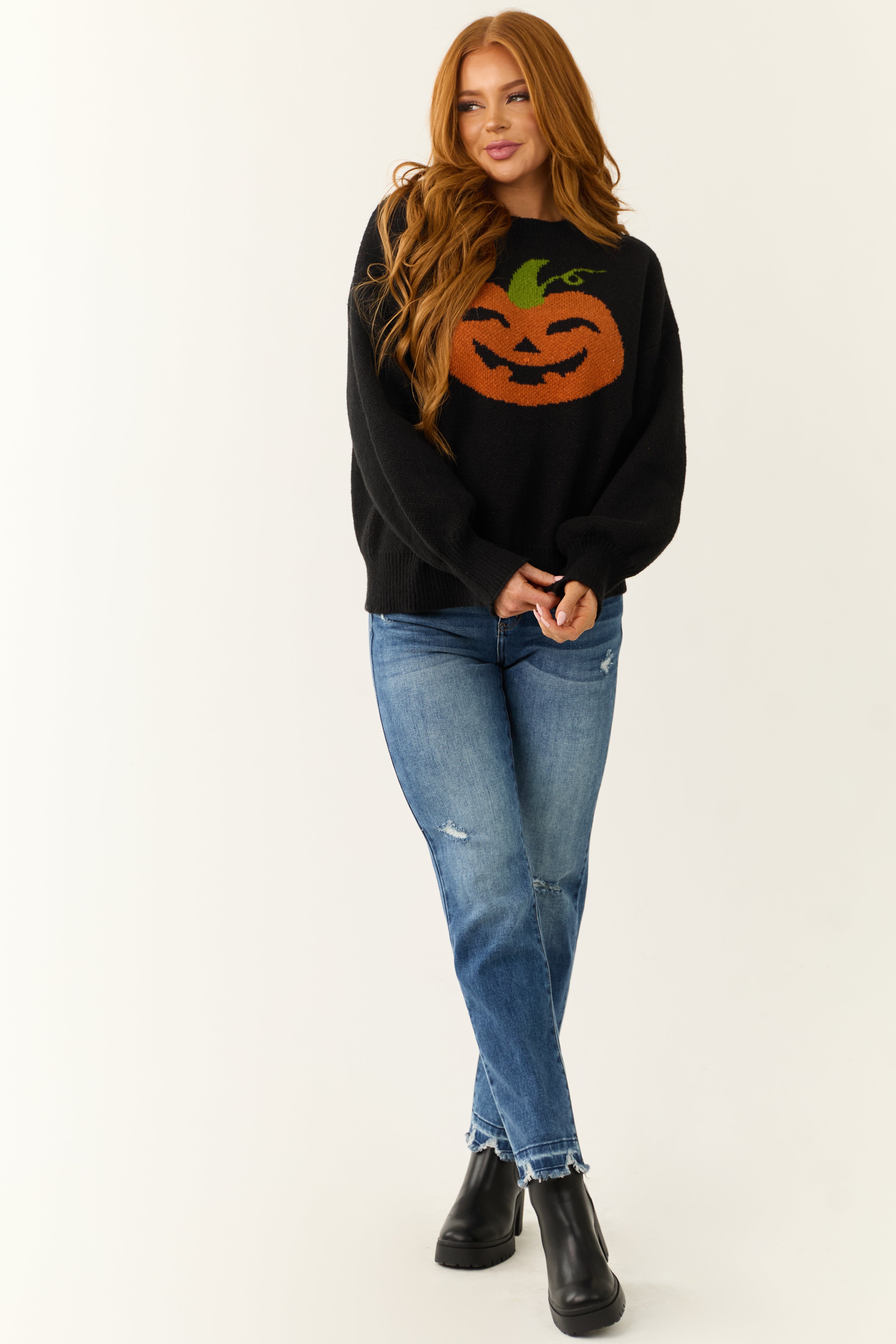 - Ribbed Halloween Jack-O-Lantern Sweater