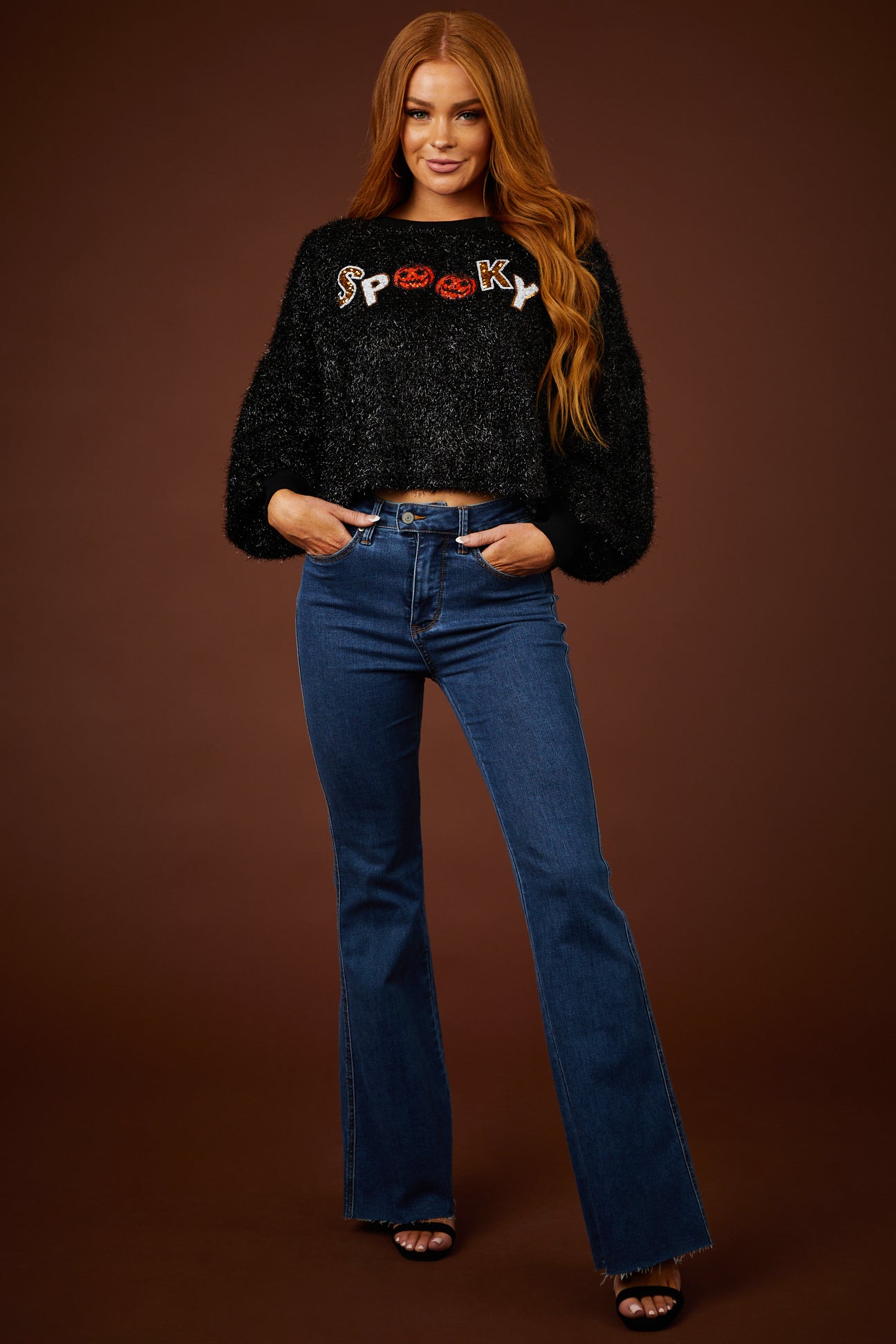 - 'Spooky' sequin graphic in White. Pumpkin and Gold